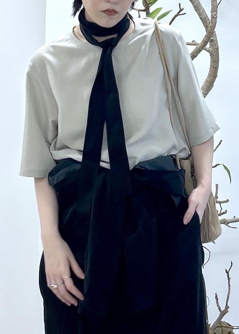 ジェントルシルクのTブラウスと合わせて着用してみました。