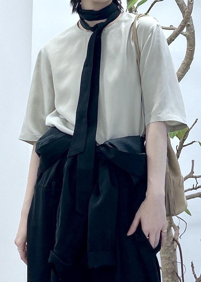 とろみのある生地なので、腰に巻くアレンジもしやすいです◎