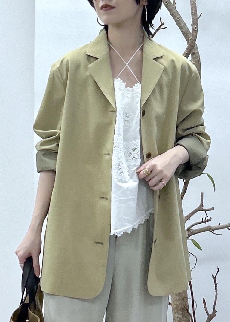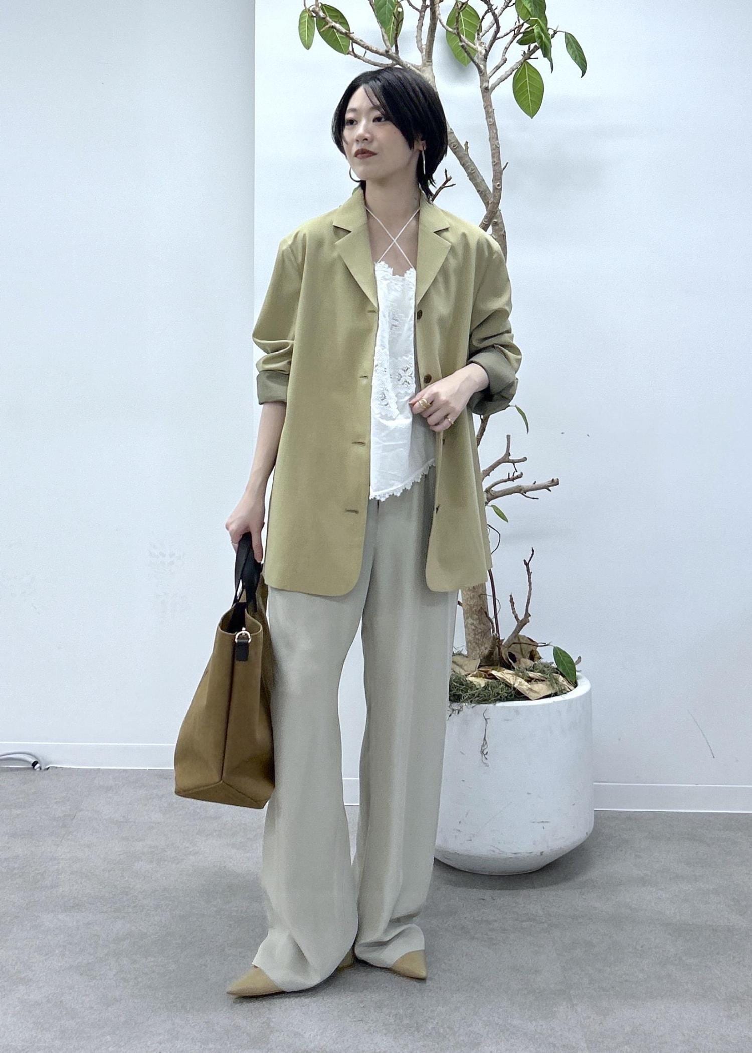 レースキャミソールと合わせて、ややクラフト感がありつつ私らしい綺麗めなスタイリングにまとめてみました。