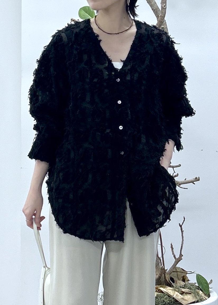 SALON adam et ropéモンターニュジャガードVネックシャツ / シアーブラウスブラック / F¥19,800レビュー【サイズ感】