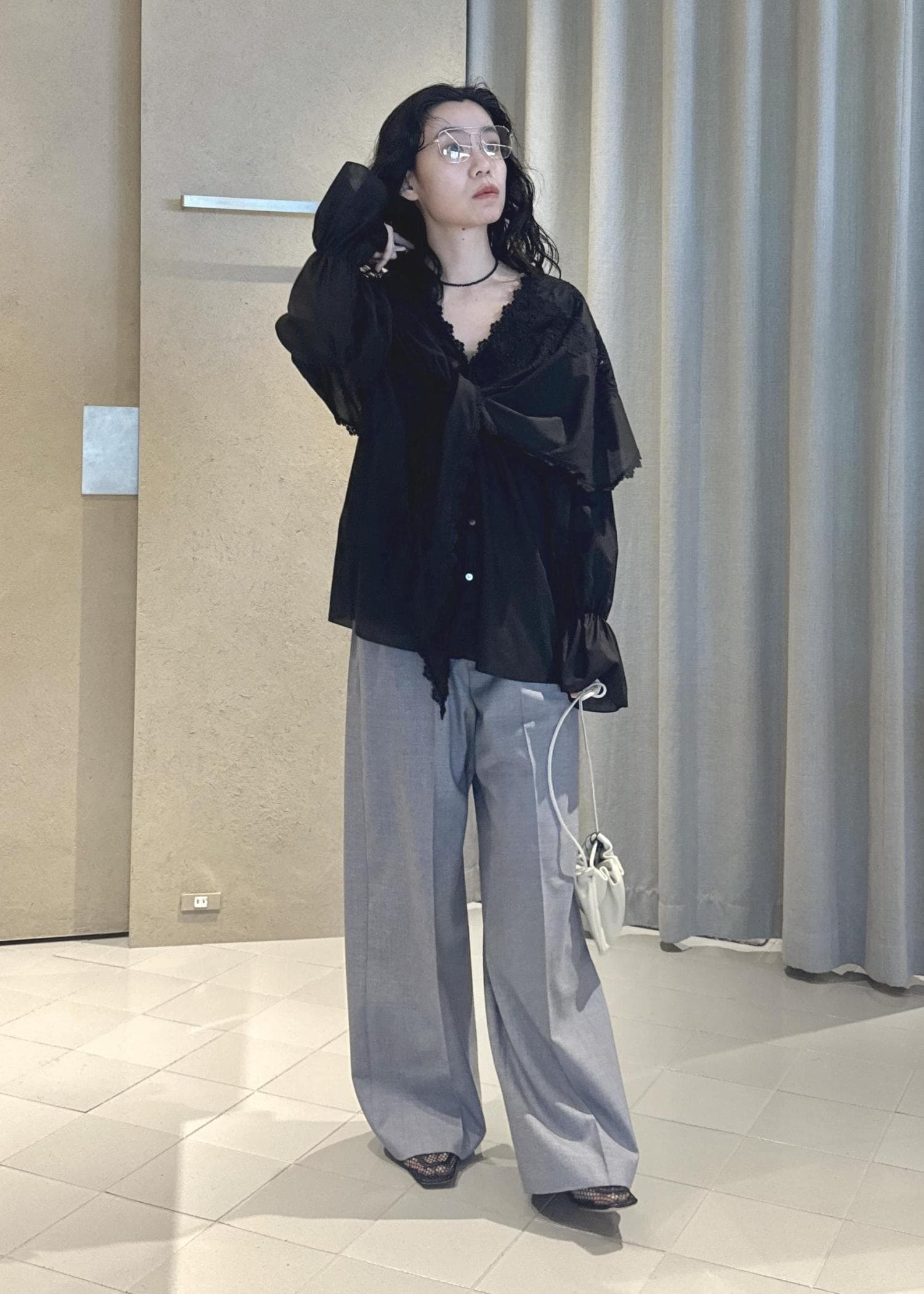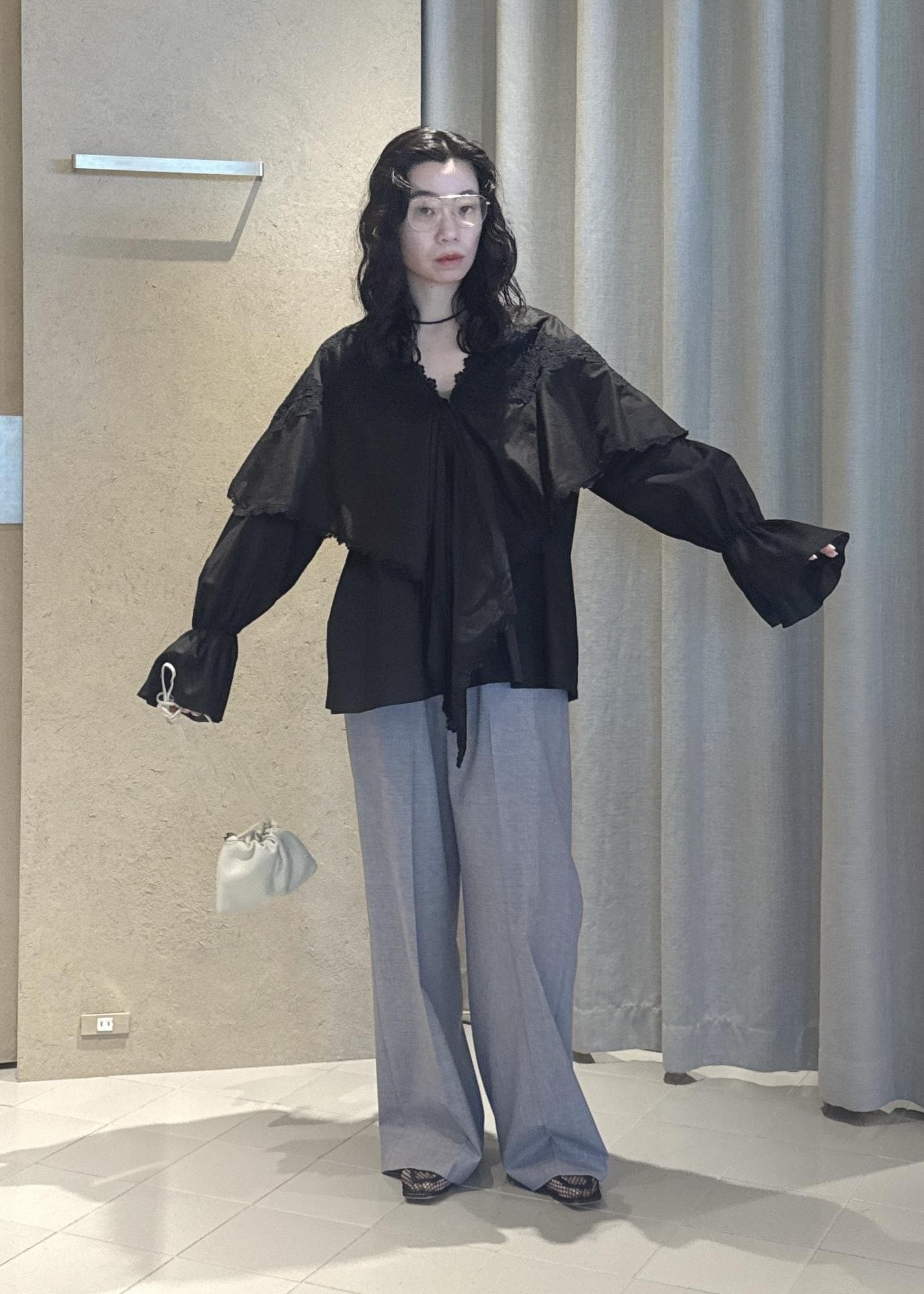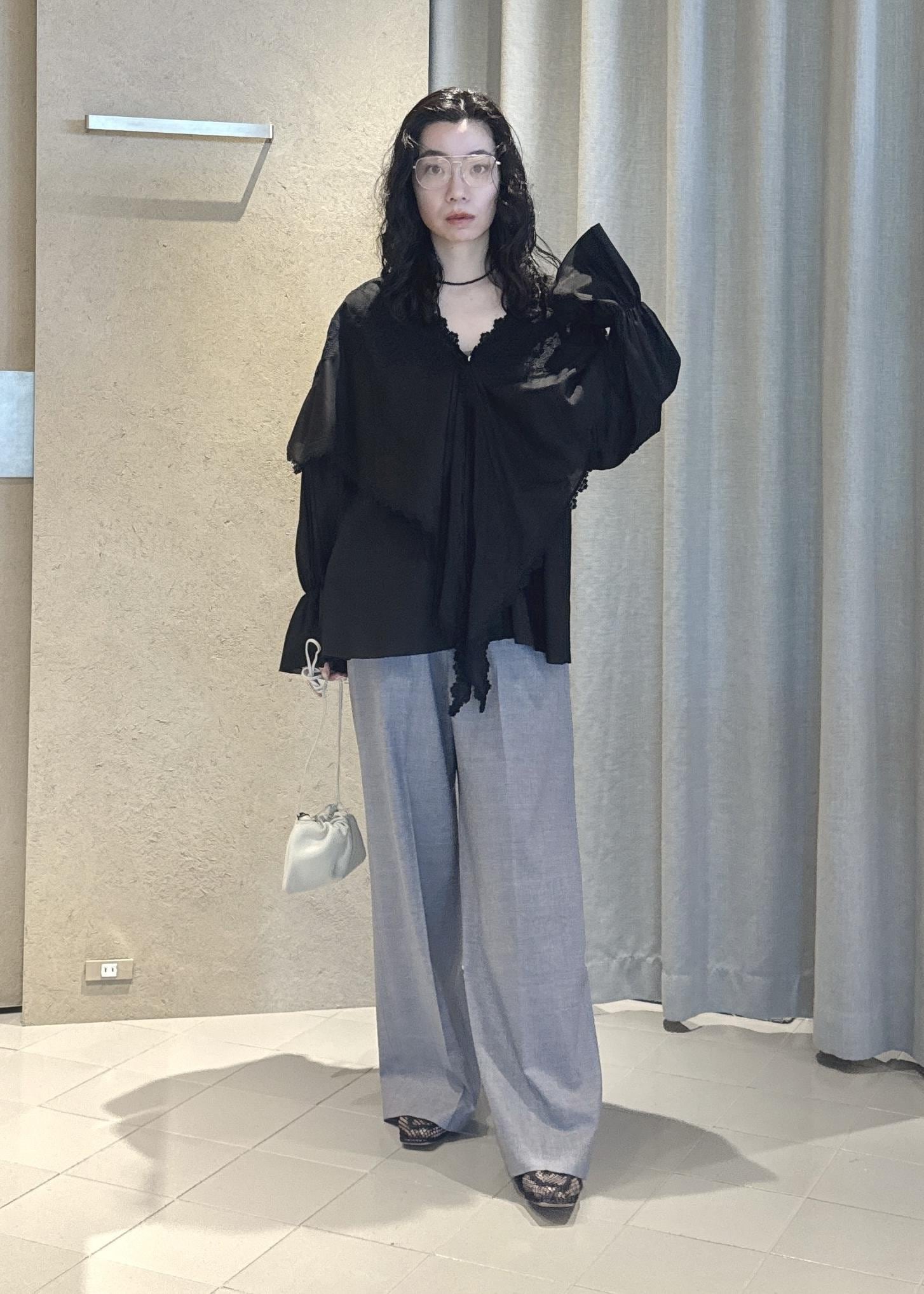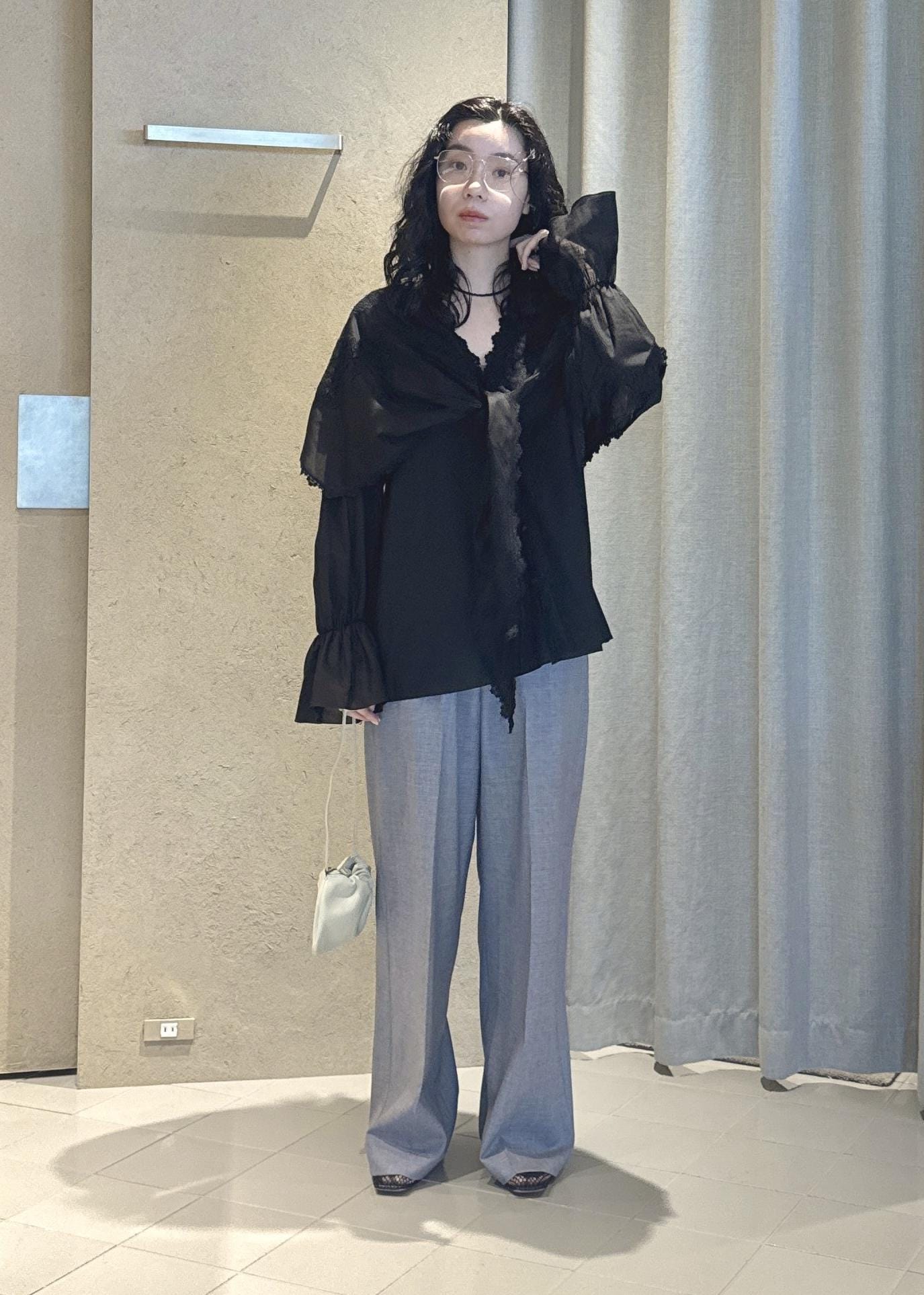 ブラックのスラックスやデニムなどマニッシュなアイテムとのスタイリングが個人的には気分です♪