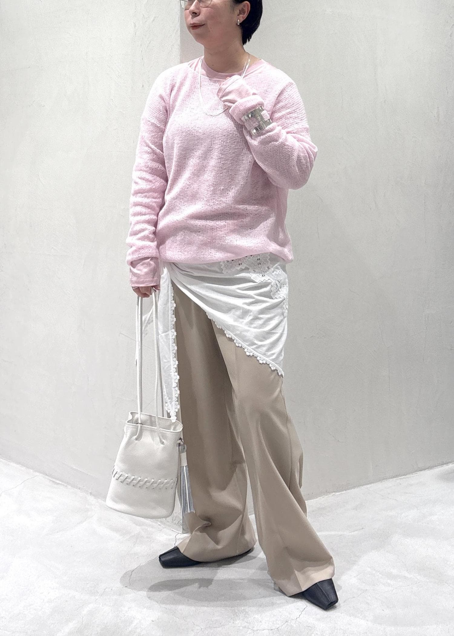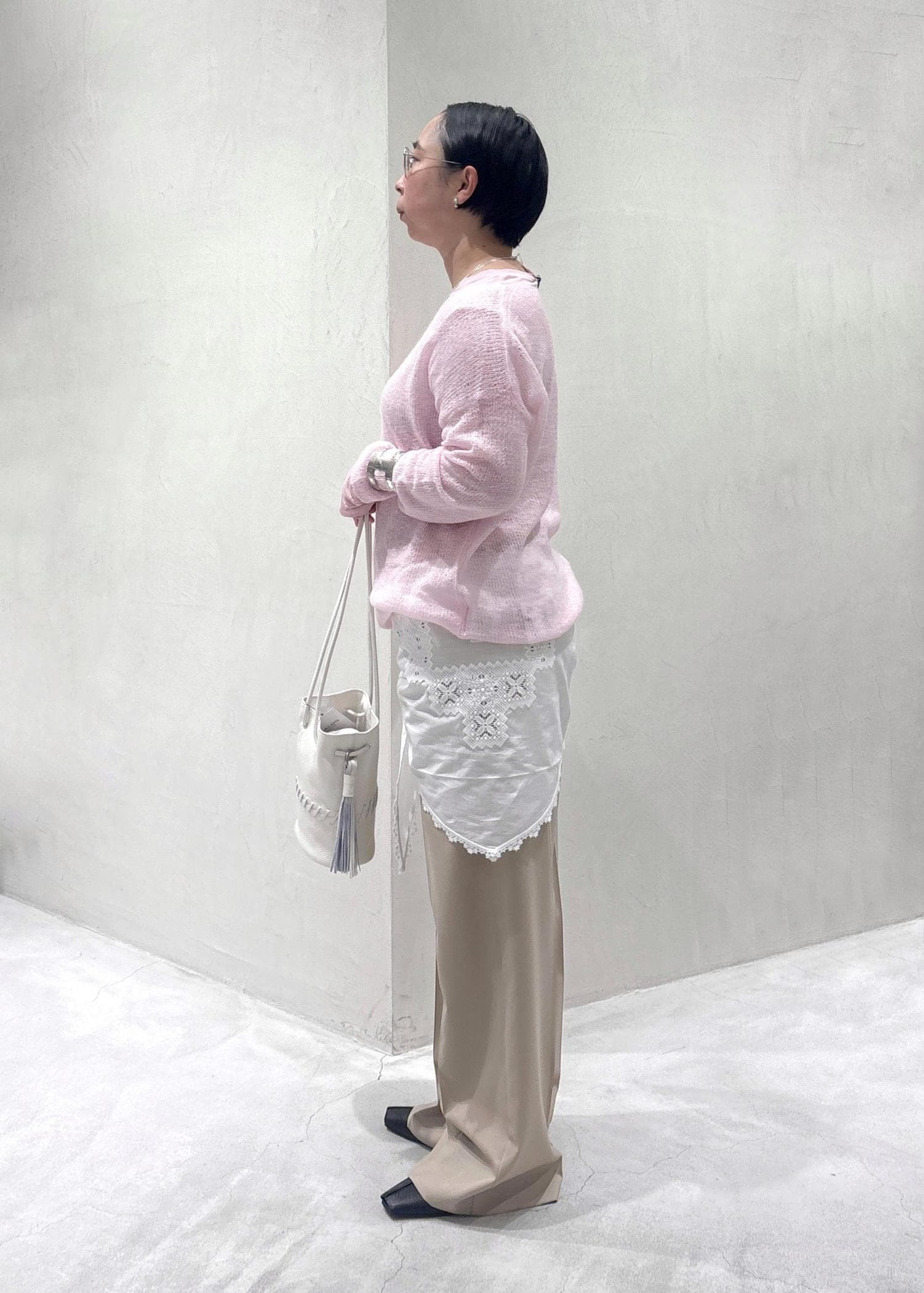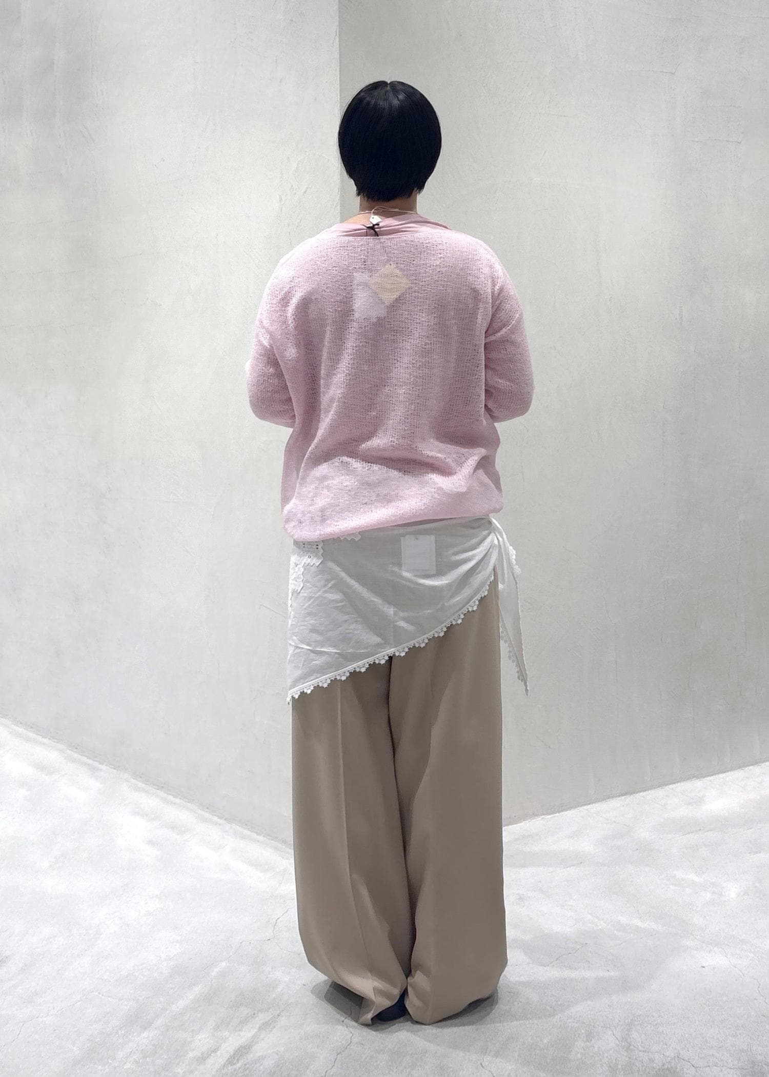 SALON adam et ropéカシミヤリネンシアーニットプルオーバーピンク / F¥16,500レビュー身頃、アーム共にかなりゆったりめで、シャツなどのレイヤードもしやすいサイズ感です。