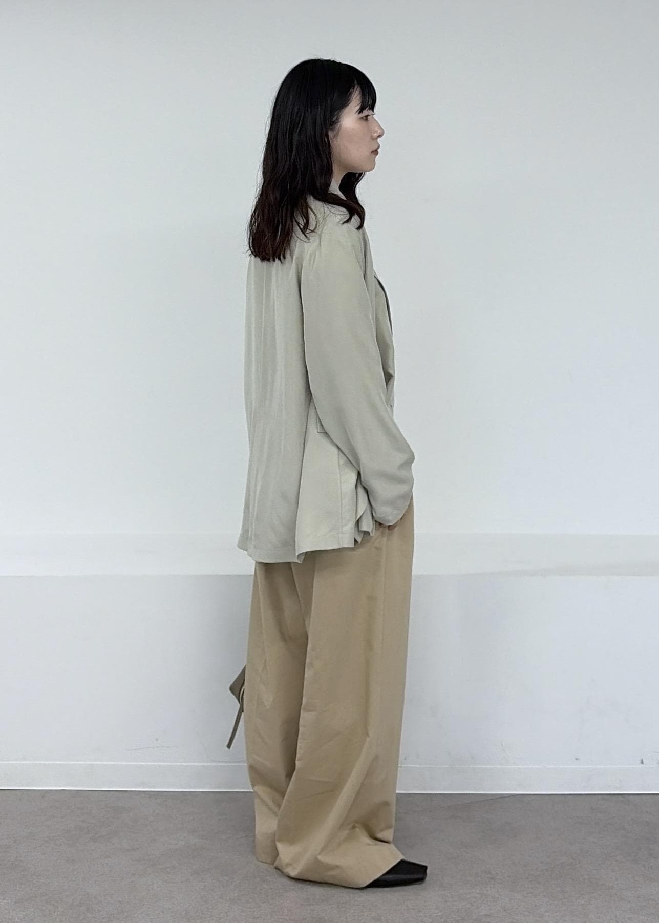 程よくハリのある素材。程よいワイドシルエットですが、ストレートラインがあるのですっきりと見える印象です。ウエストはボタンで詰めることも可能です。 -