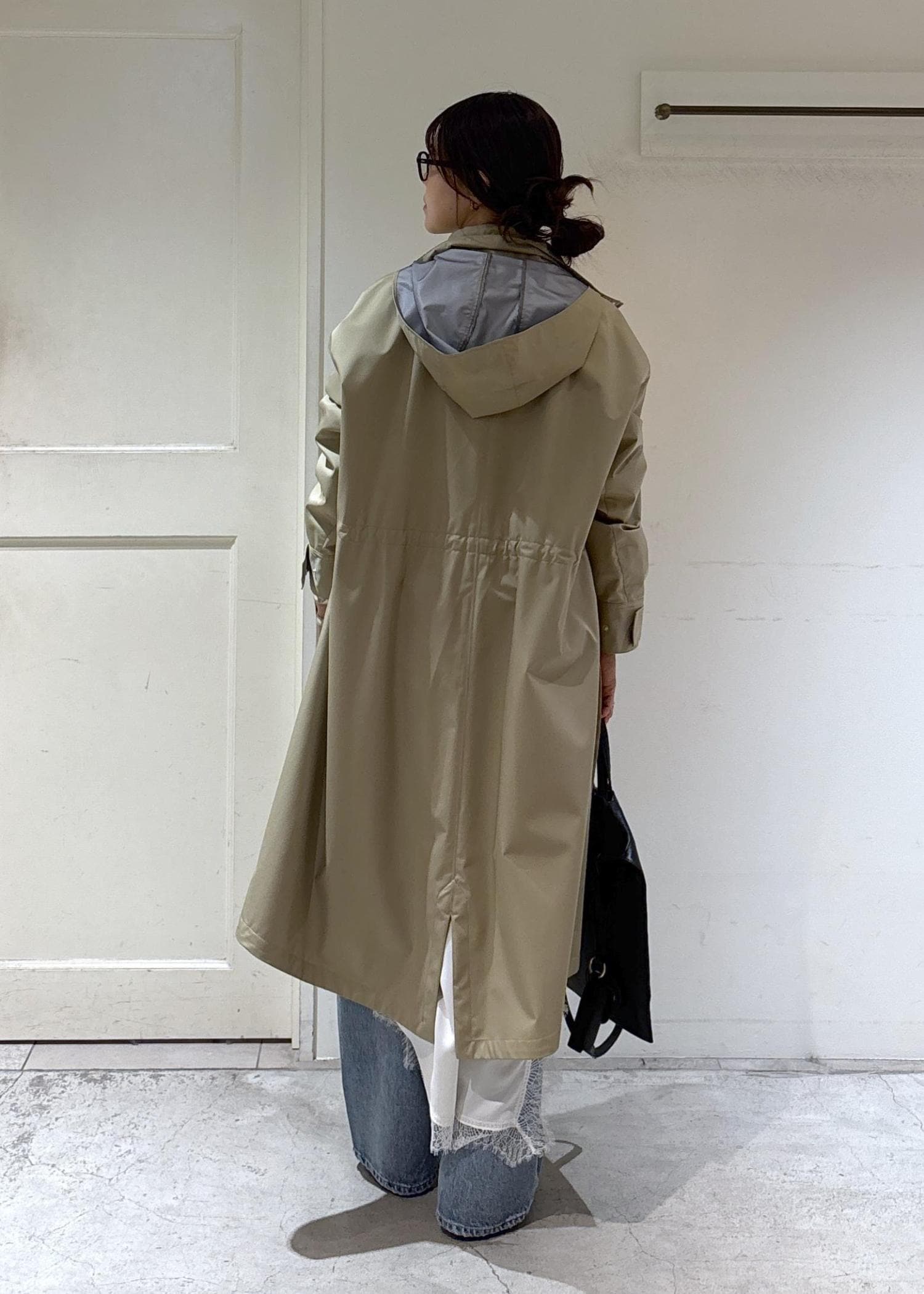 フードはスタンドカラー内にしまえるのでその日のスタイルに合わせて着ていただけますよ。