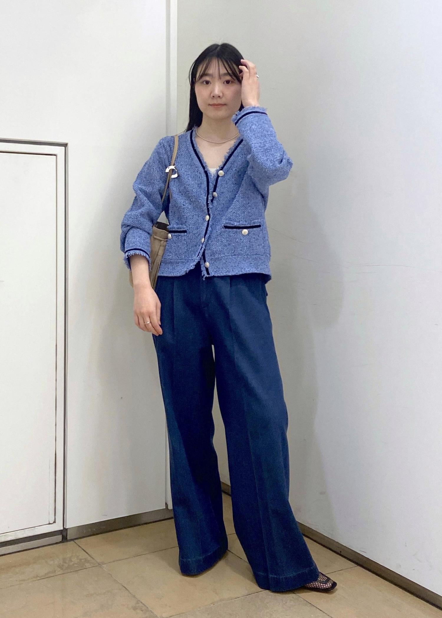 SALON adam et ropéツイーディーニットカーディガンブルー系 / F¥31,900レビュー【サイズ感】
