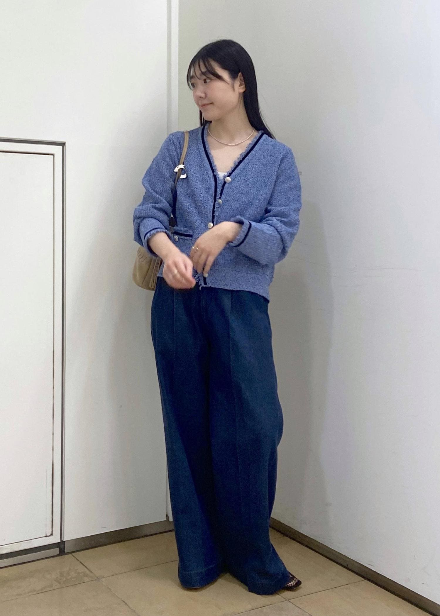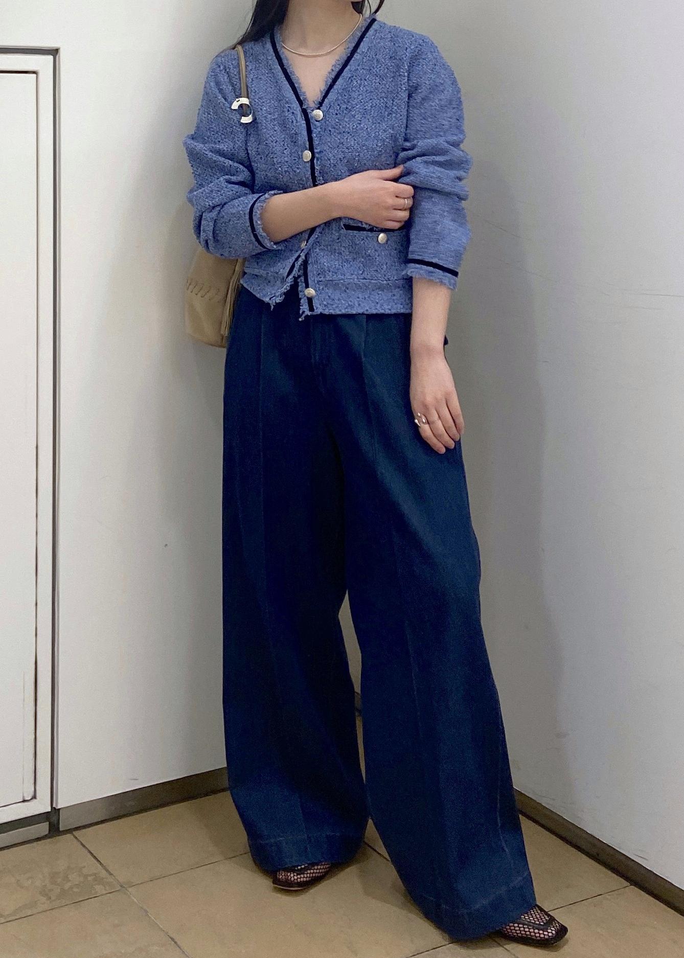 ツイード素材は綺麗めすぎる...という方にもデイリーに着ていただけるカーディガンです。