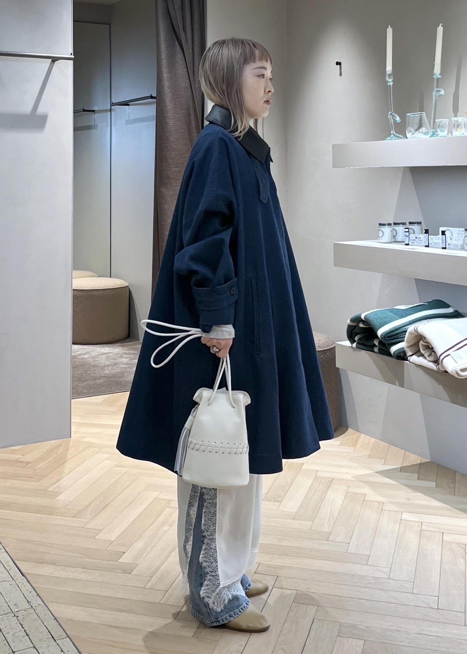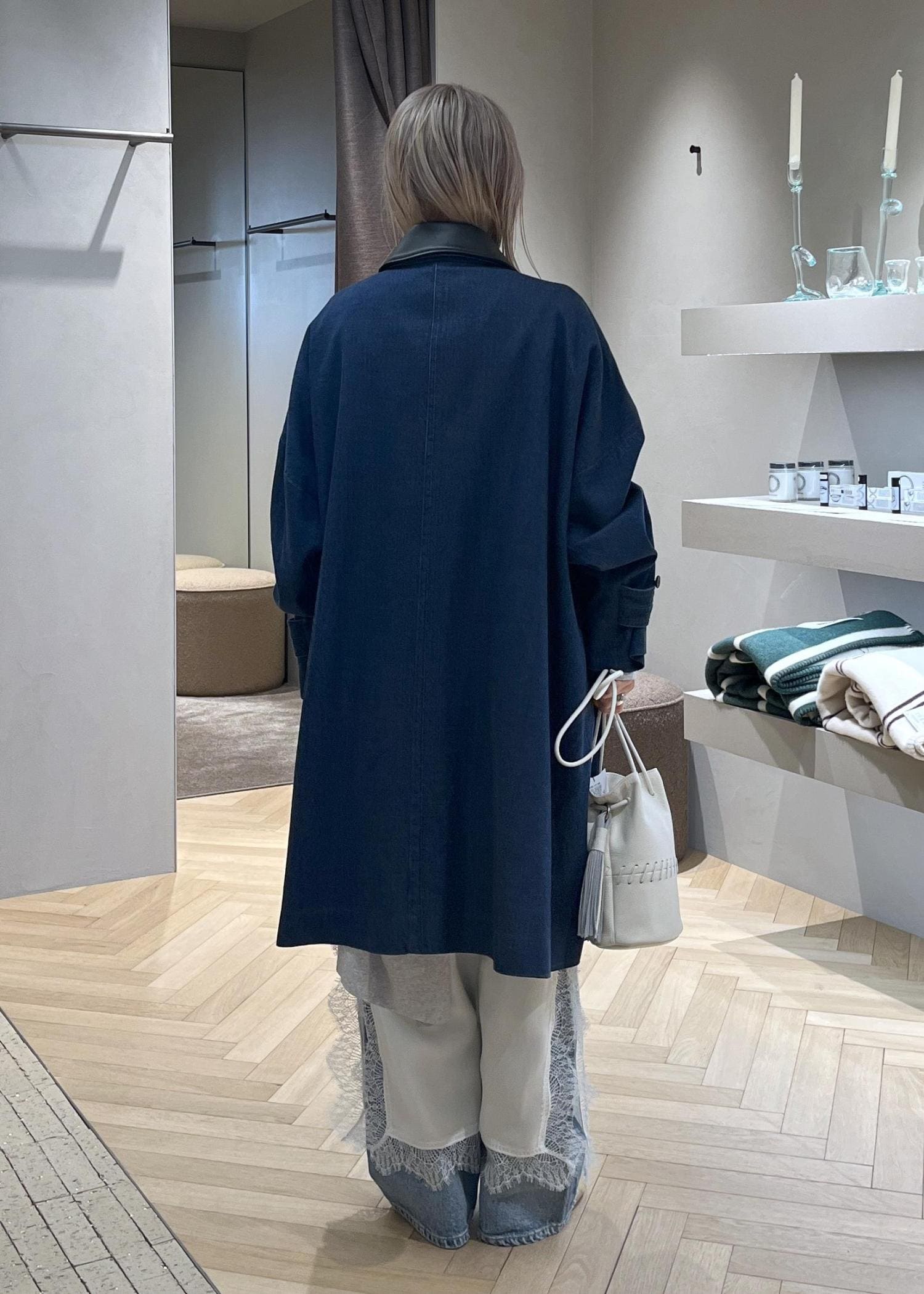 SALON adam et ropéデニムテントシルエットステンカラーコートネイビー系 / F¥49,500レビュー152cm、膝上くらいの丈。