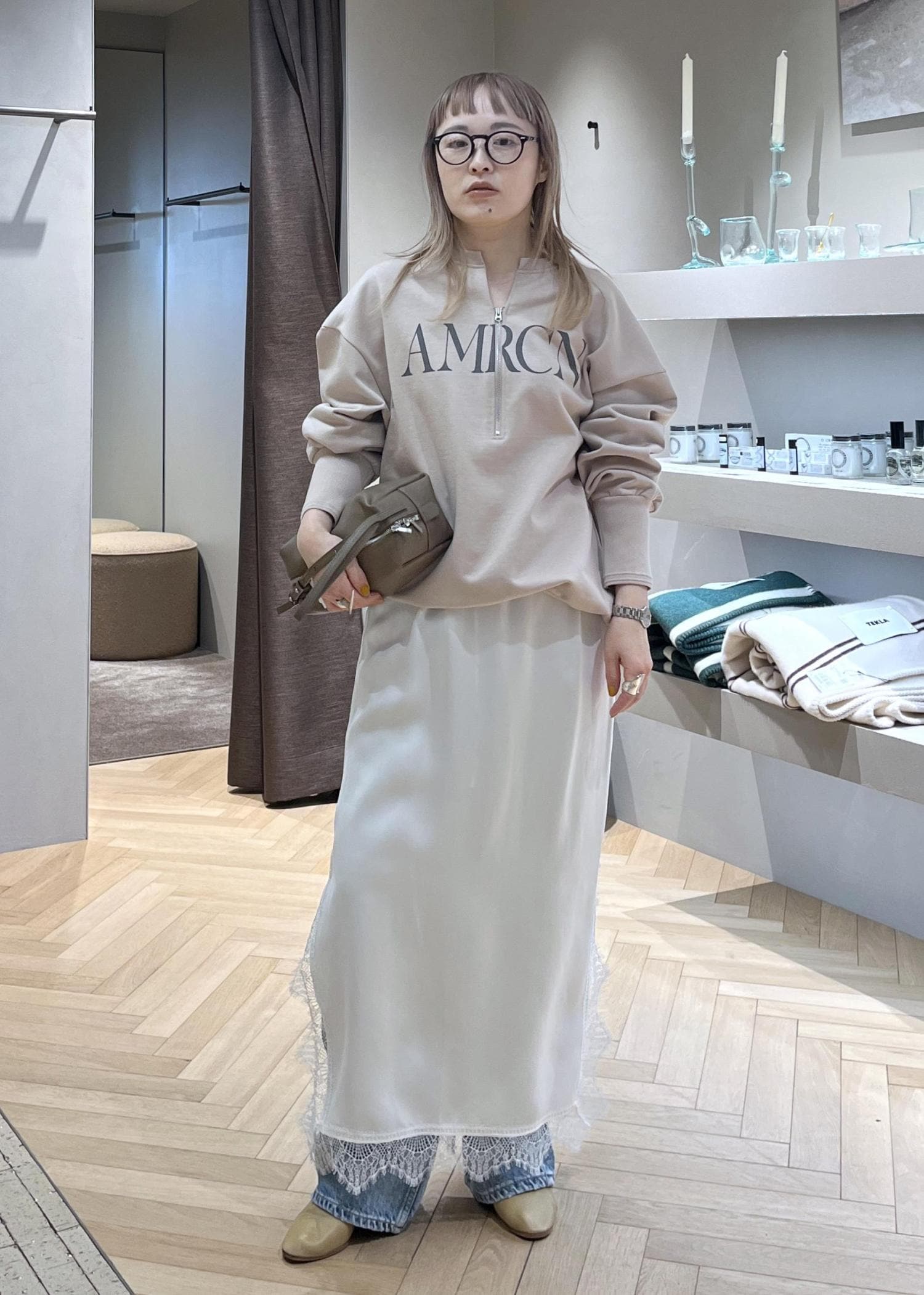 SALON adam et ropé【Americana(アメリカーナ) for SALON】ロゴジップスウェットベージュ系 / F¥23,100レビューやや後ろ長な着丈でお尻が半分隠れるくらい。