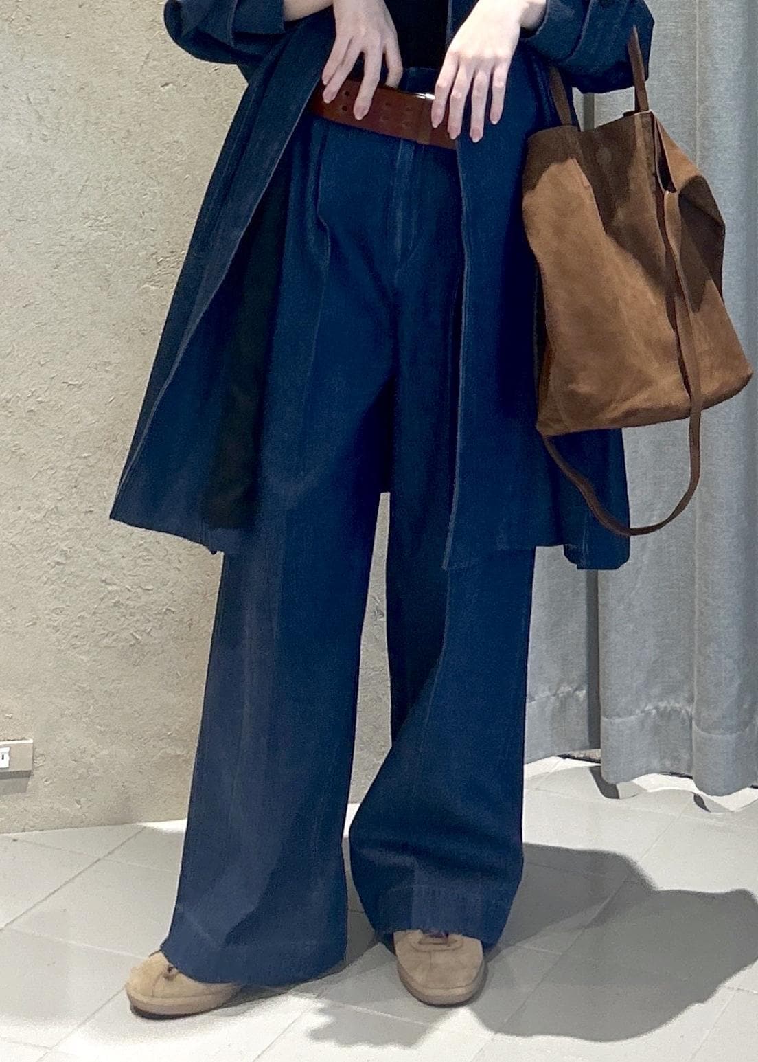 しっかりとしたデニム生地ですが、着用すると重たさはそんなに感じにくくサラリと着て頂けます。