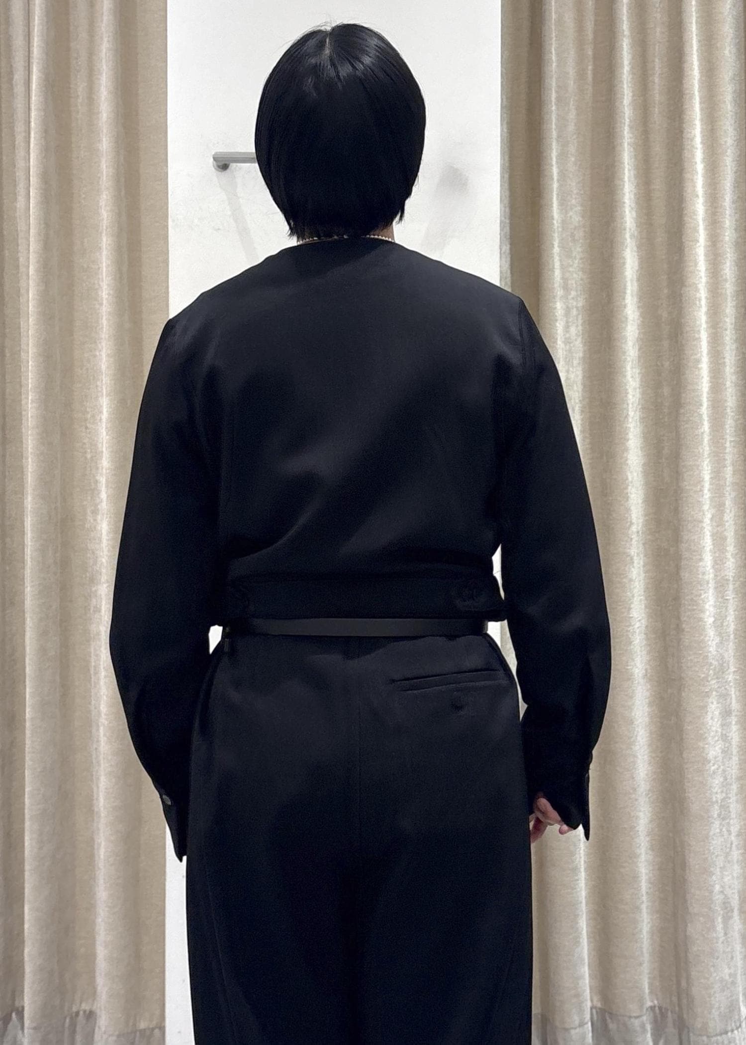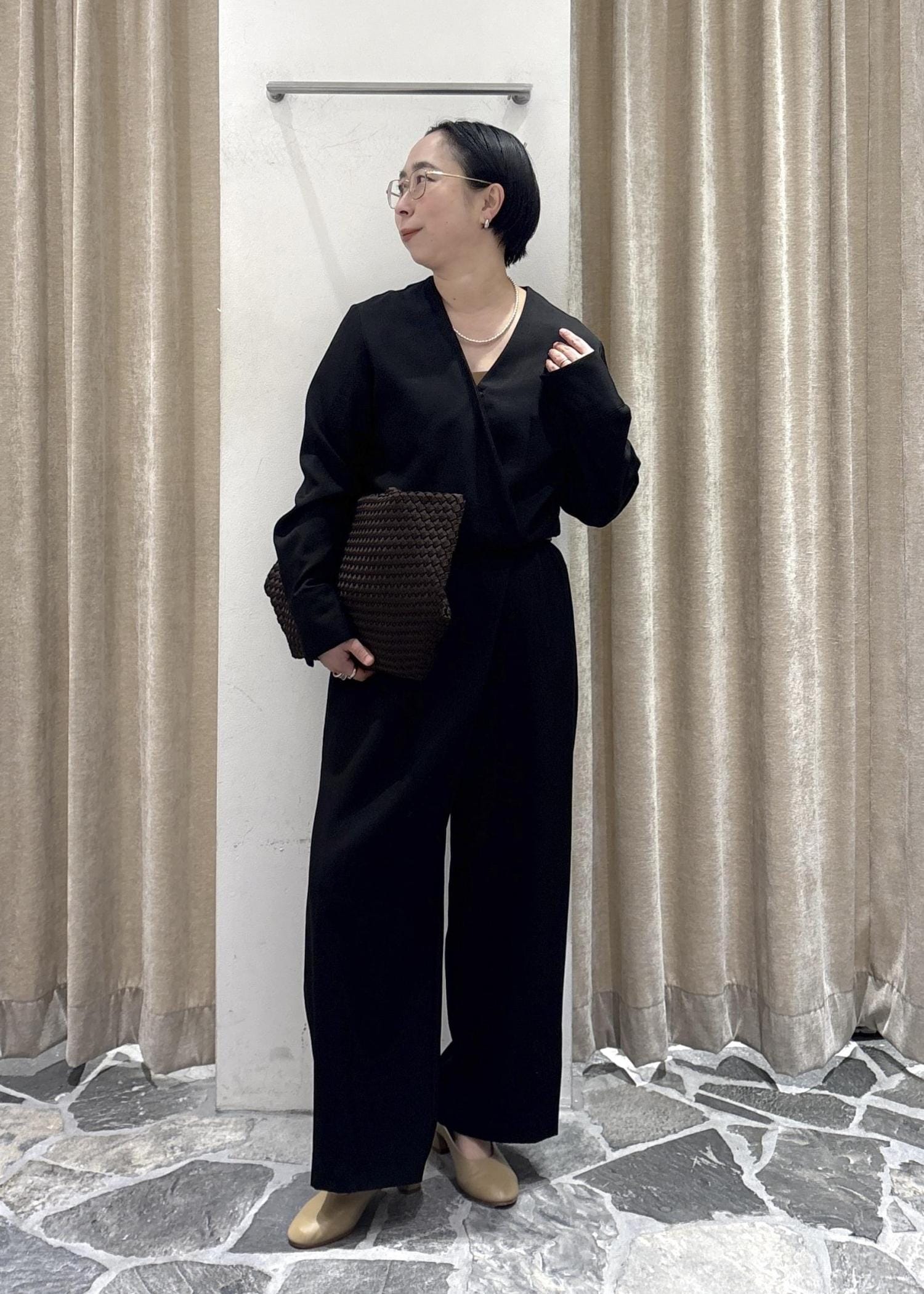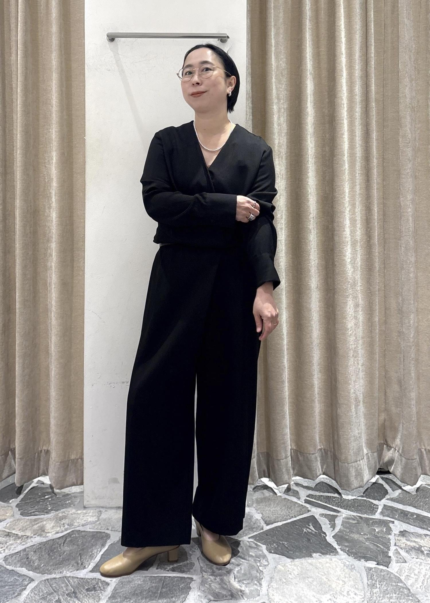 身頃、アーム、ウエスト共にゆったりめのサイズ感。着丈は154cmでヒールだとぎりぎりいけましたが、フォーマルスタイルの時はベルトでブラウジングした方がバランスよく着られました。