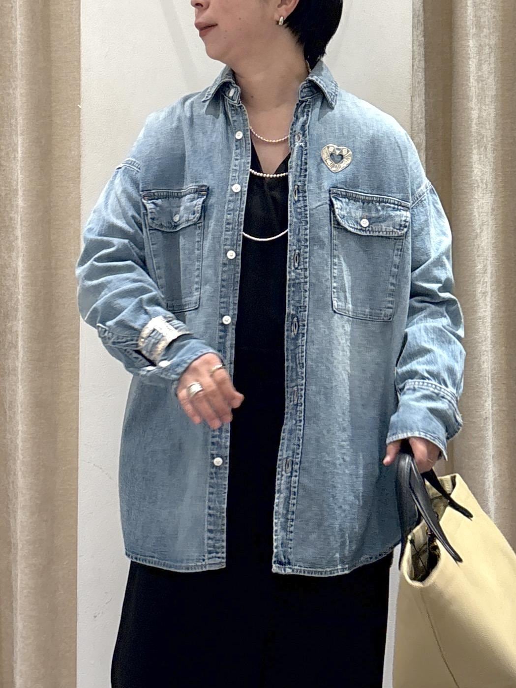 SALON adam et ropé【RED CARD TOKYO for SALON】DENIM BIG SHIRTブルー系 / F¥26,400レビュー身頃、アーム共にゆったりしたサイズ感ですが、厚手すぎず程よいオチ感が女性らしい印象のデニムシャツです。