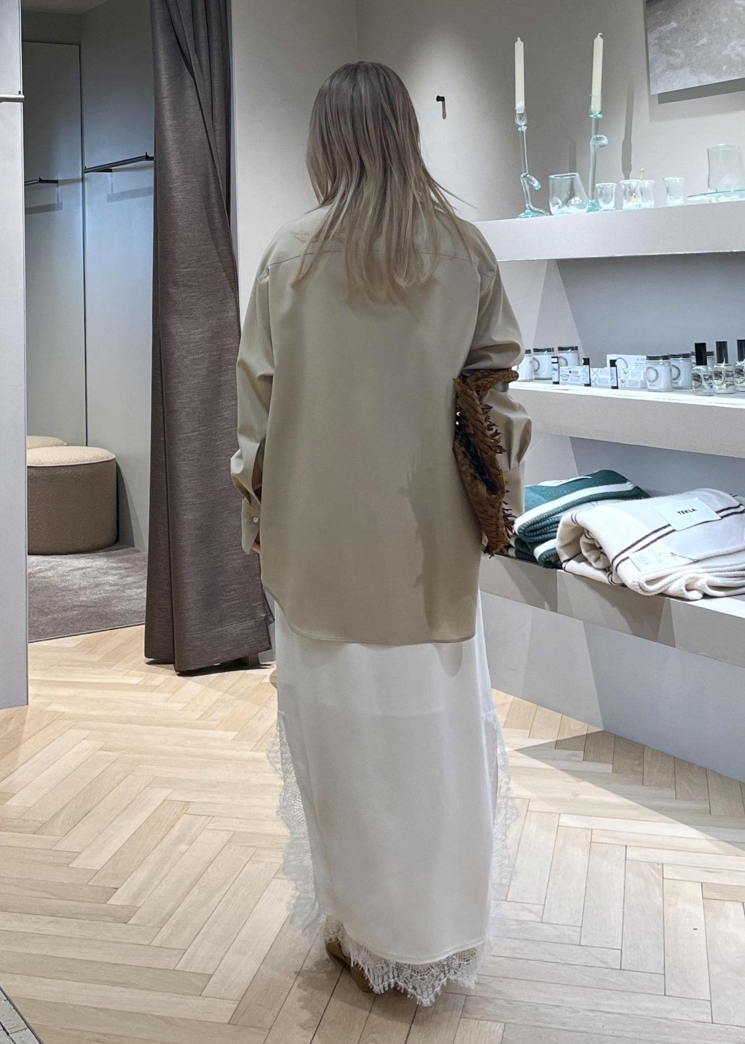 SALON adam et ropéノンミュールジングウールシャツ / セットアップ対応ベージュ / F¥25,300レビューお尻がすっぽり隠れるゆったりサイズ。