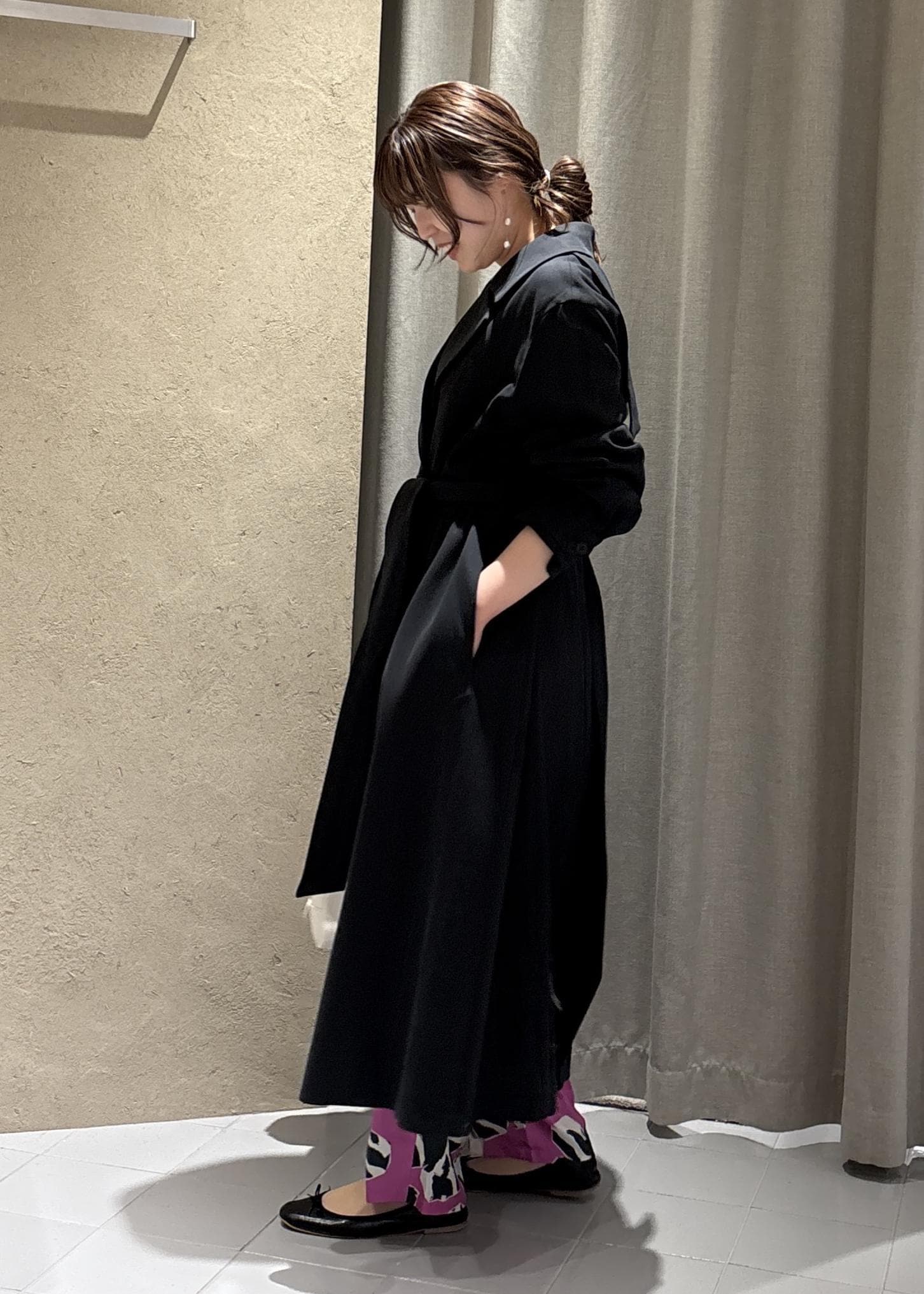 SALON adam et ropéニュアンストレンチコートブラック / F¥53,900レビューしっかりと長さのあるスプリングコート。羽織ると重さはそんなに感じずに着用できるのも嬉しいです。