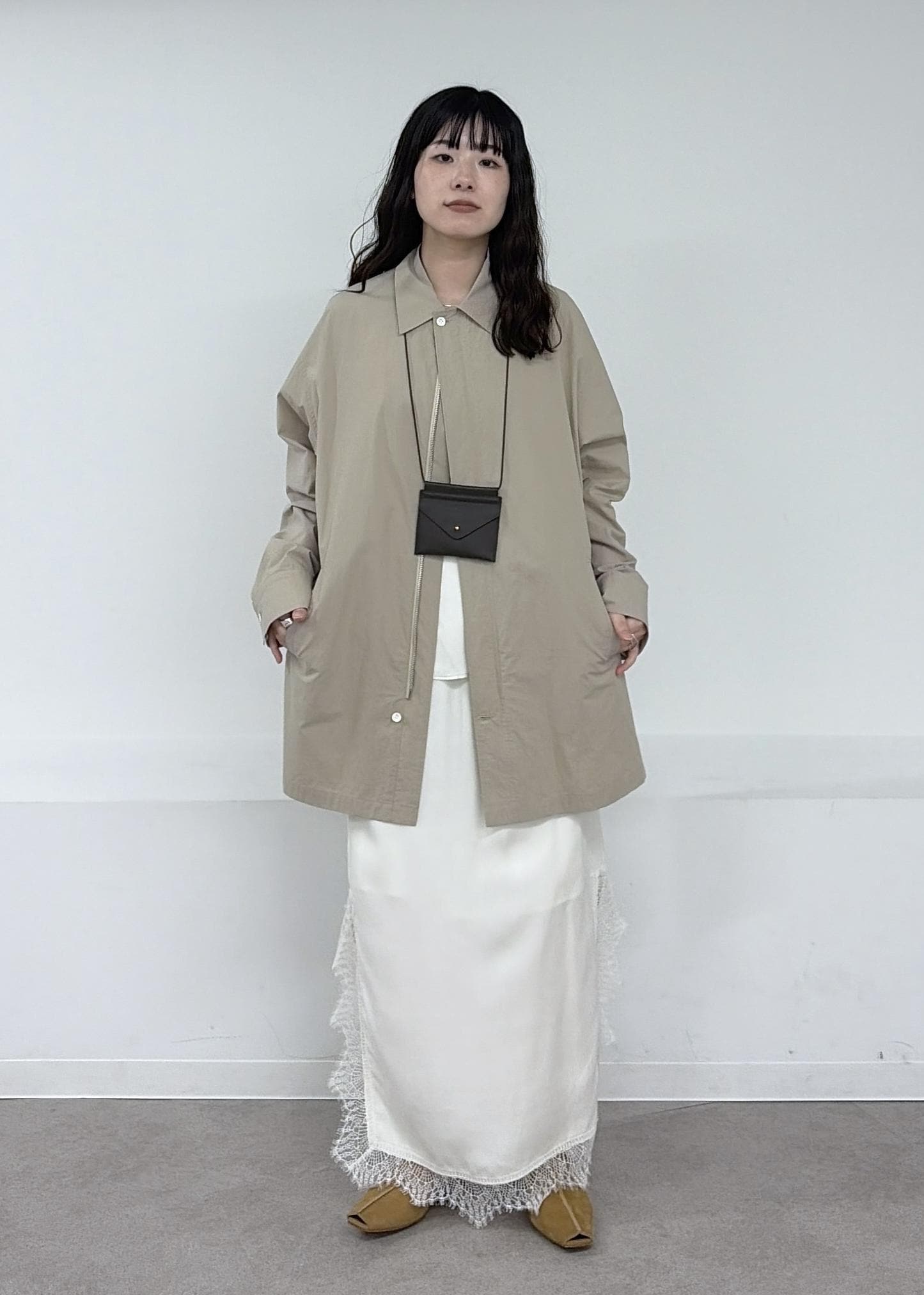 アウターを着ていなければ、肩から掛けられます。 -