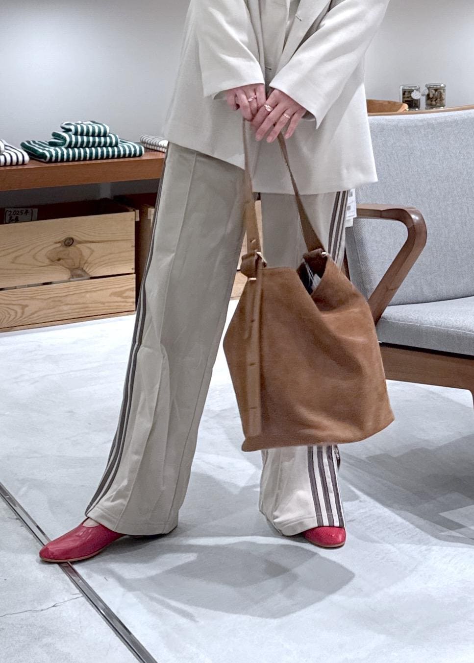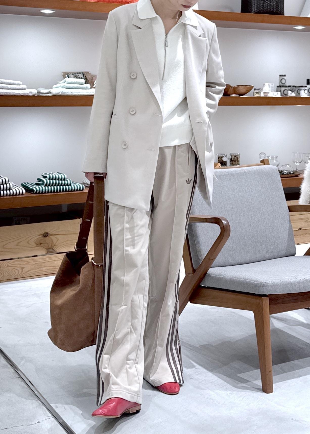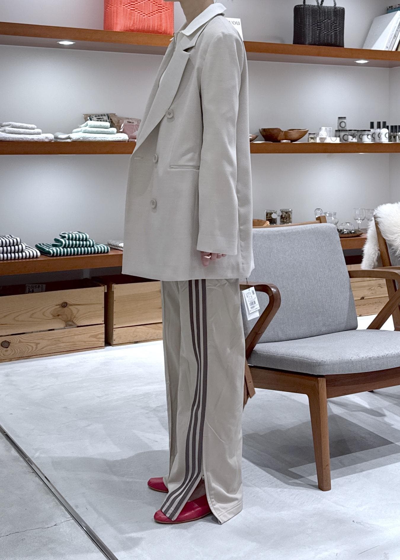 ベージュなのでスポーティになりすぎず、ラインパンツ挑戦したい方は是非試して欲しいです -