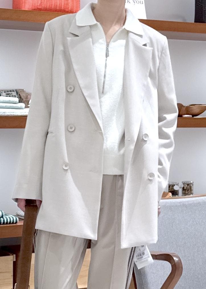 SALON adam et ropéトレビラツイルテーラードジャケットベージュ / F¥39,600レビューアーム周りは細身ですっきりきていただけます。