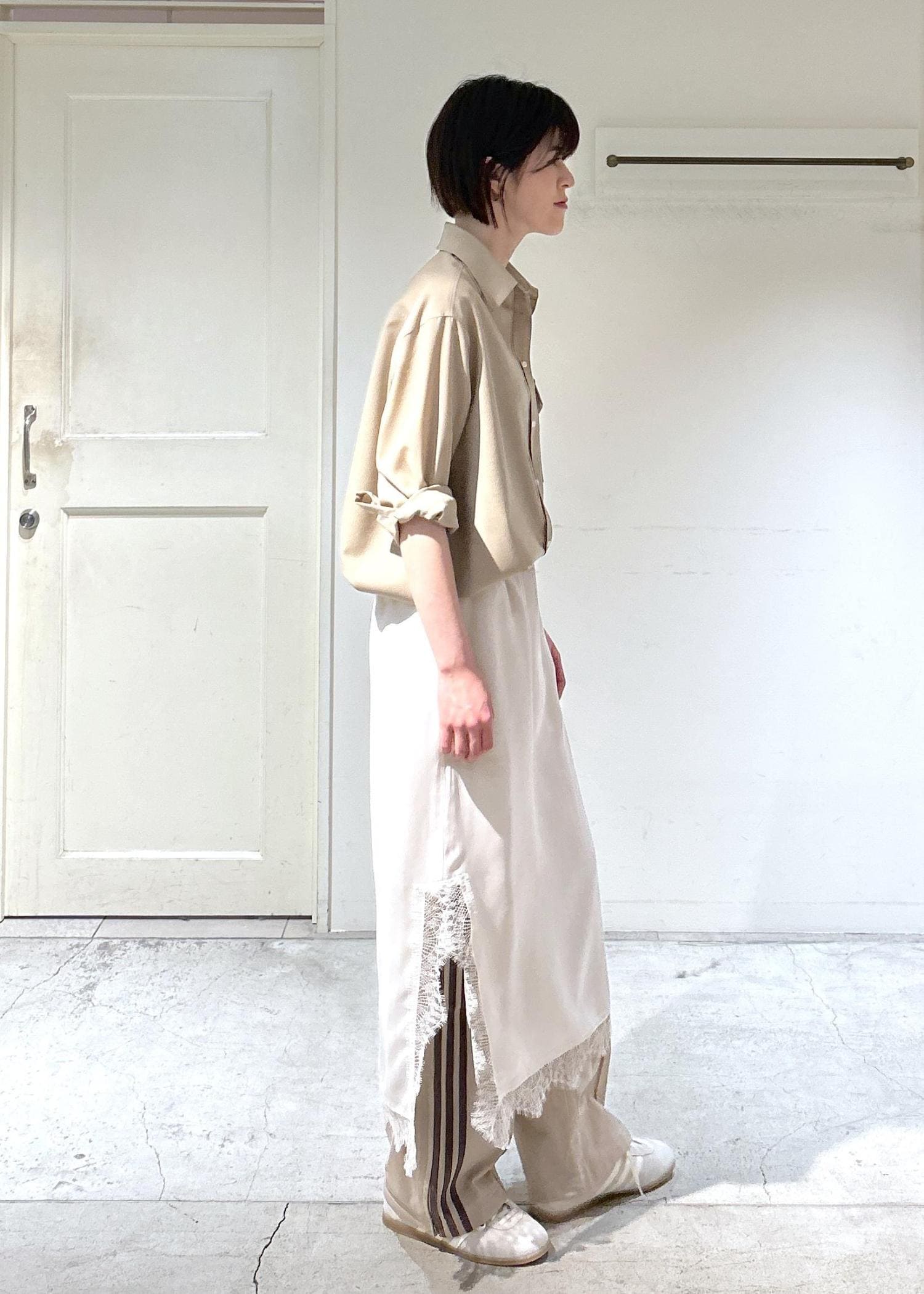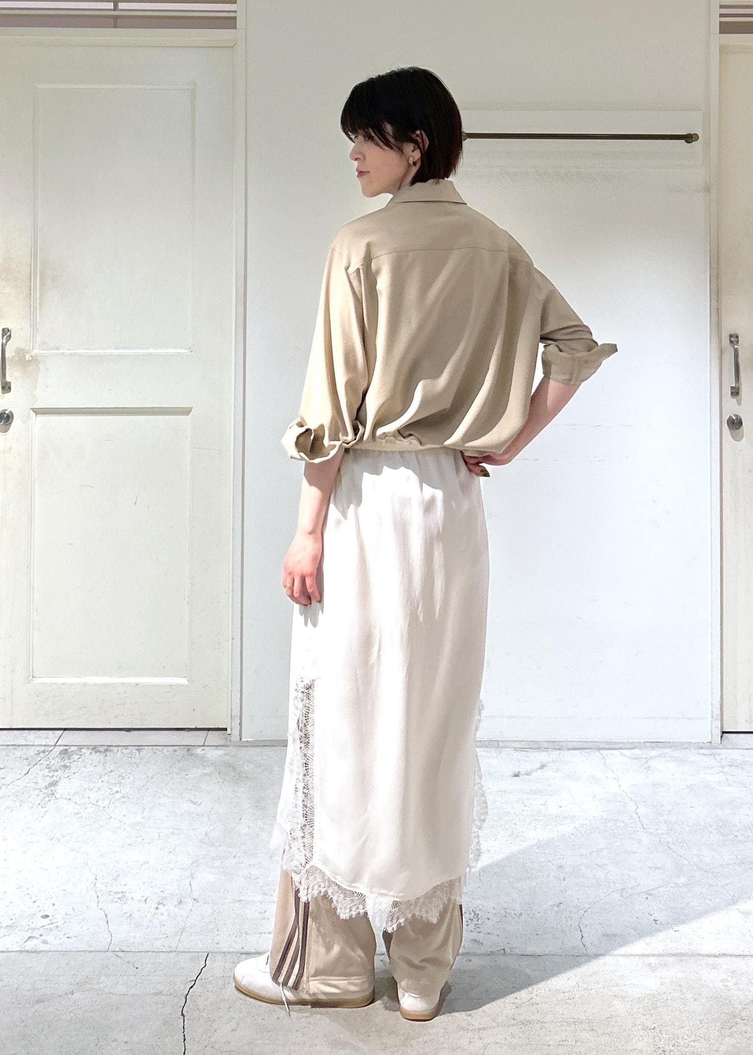ベージュのワントーンをベースにホワイトのレーススカートをレイヤードしてみました。