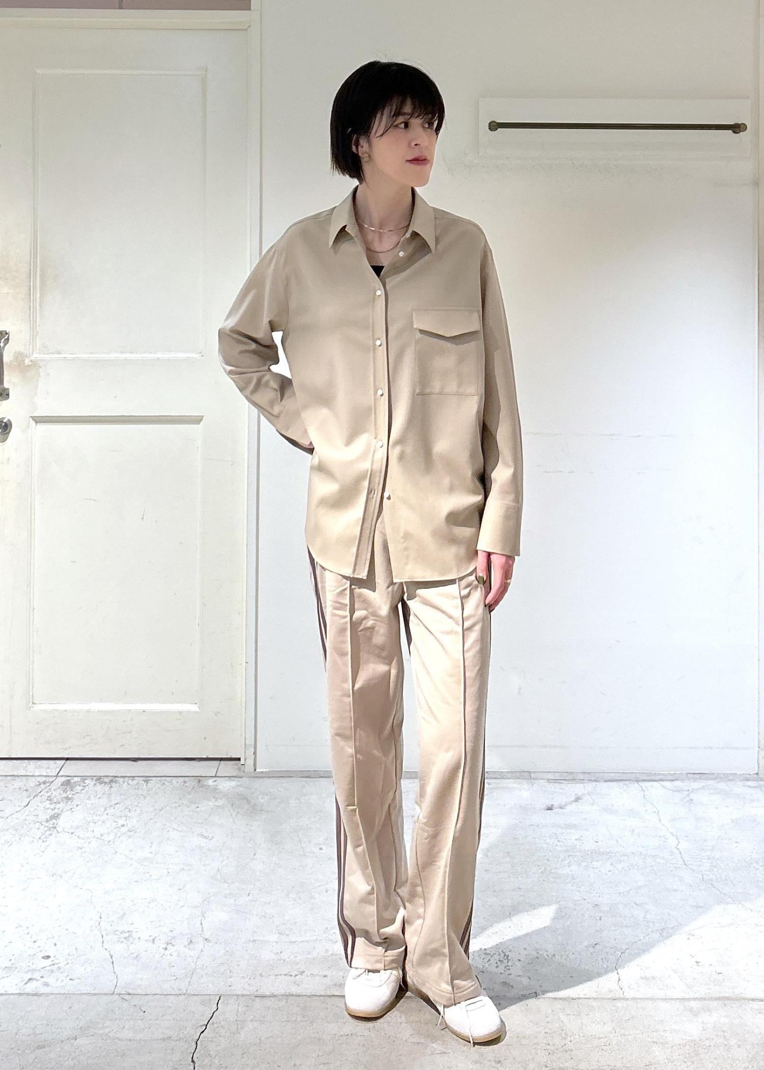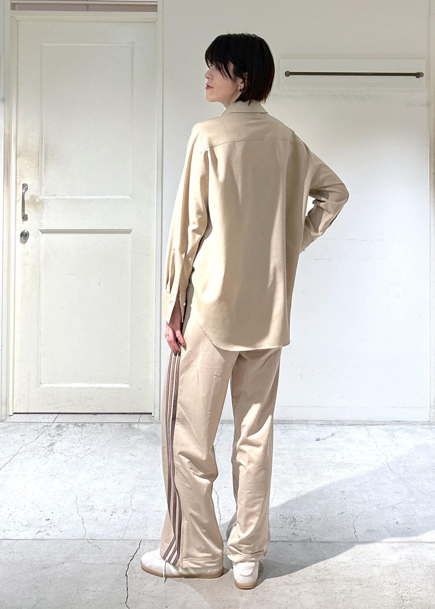 SALON adam et ropéノンミュールジングウールシャツ / セットアップ対応ベージュ / F¥25,300レビュー身長171cmで、丈はお尻が隠れるくらいの長さです。ウール素材ですが薄手なので、長い時期着られます。チクチク感は気になりませんでした。一枚でも羽織でも、インナーでもマルチに使えます。
