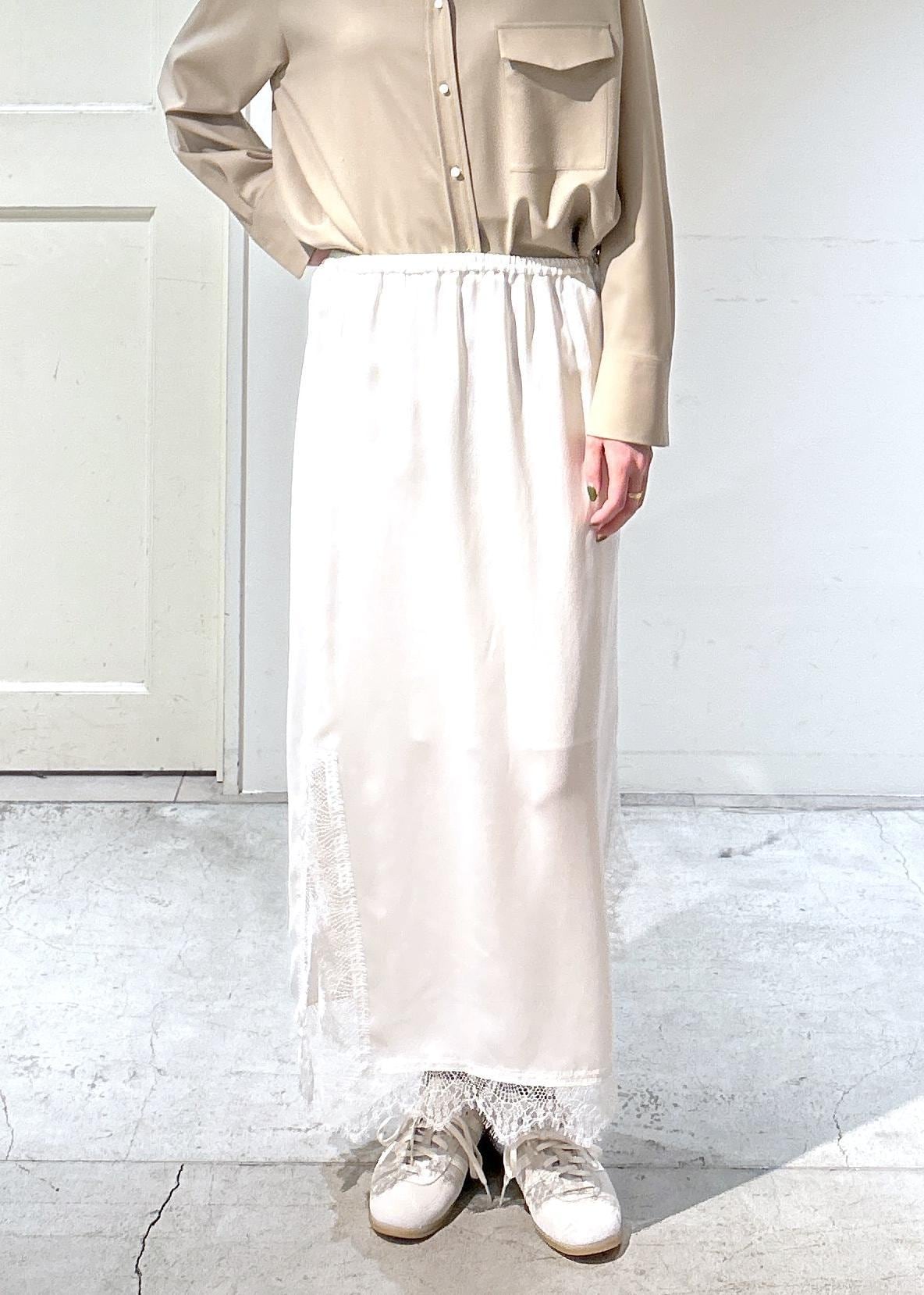 SALON adam et ropéフレンチレースパネルスカートオフホワイト / F¥25,300レビュー身長171cmで、丈はレース部分でくるぶしが隠れるくらいの長さです。ウエストはオールゴムなので、履きやすいです。透け感はありますが、ペチコートがついているので安心です。