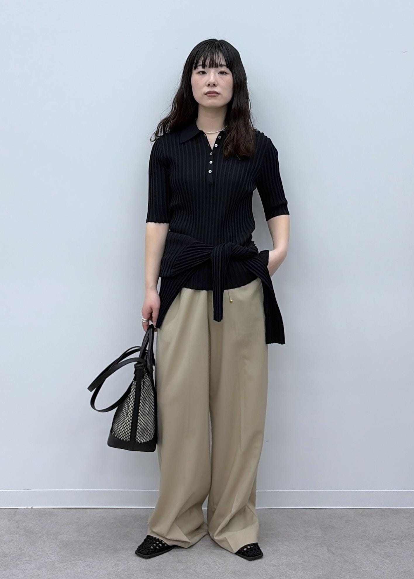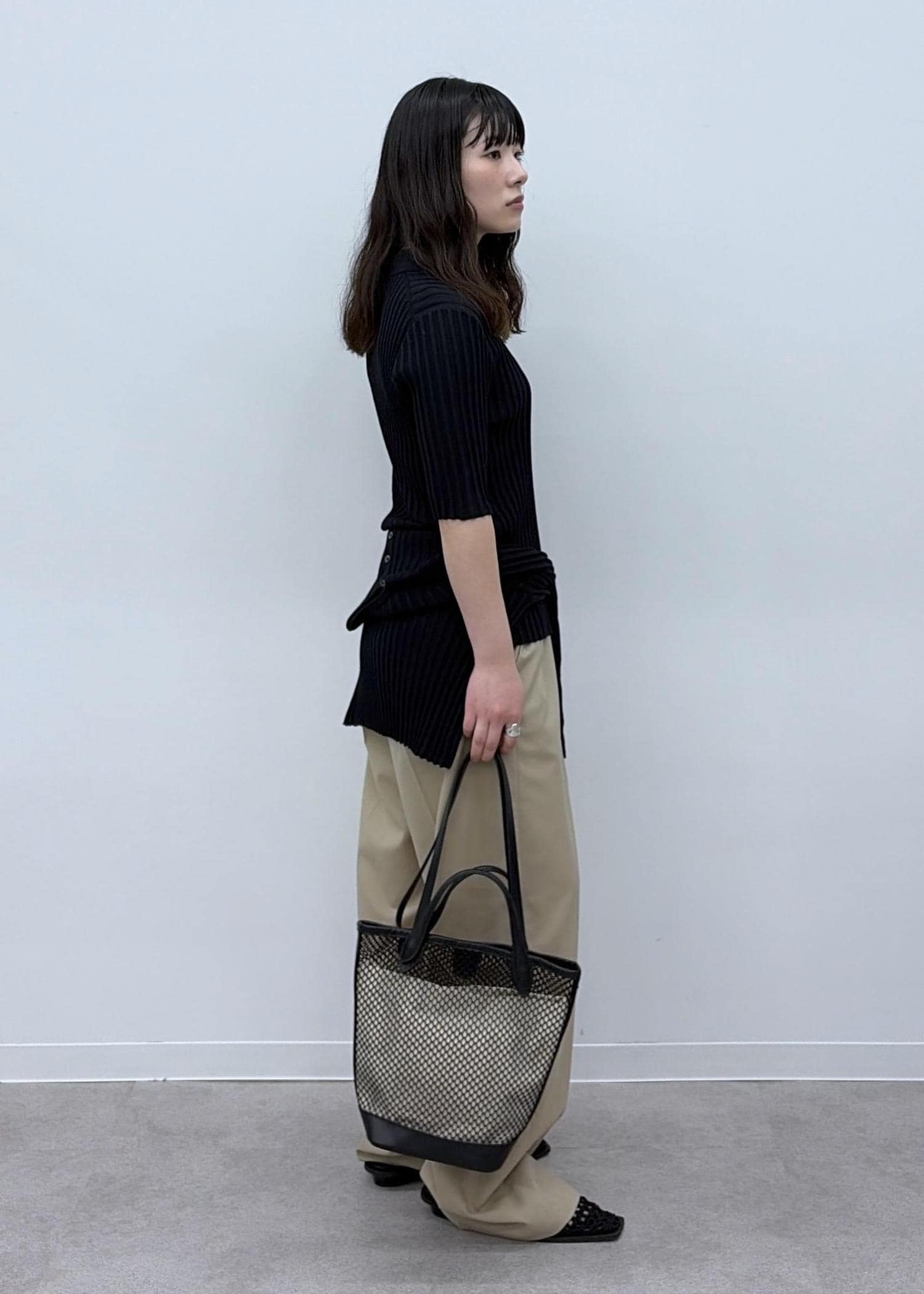 予約SALON adam et ropé【WS(ドゥーブル)】ダブルハンドルメッシュトートブラック / F¥17,600レビュー【サイズ感】