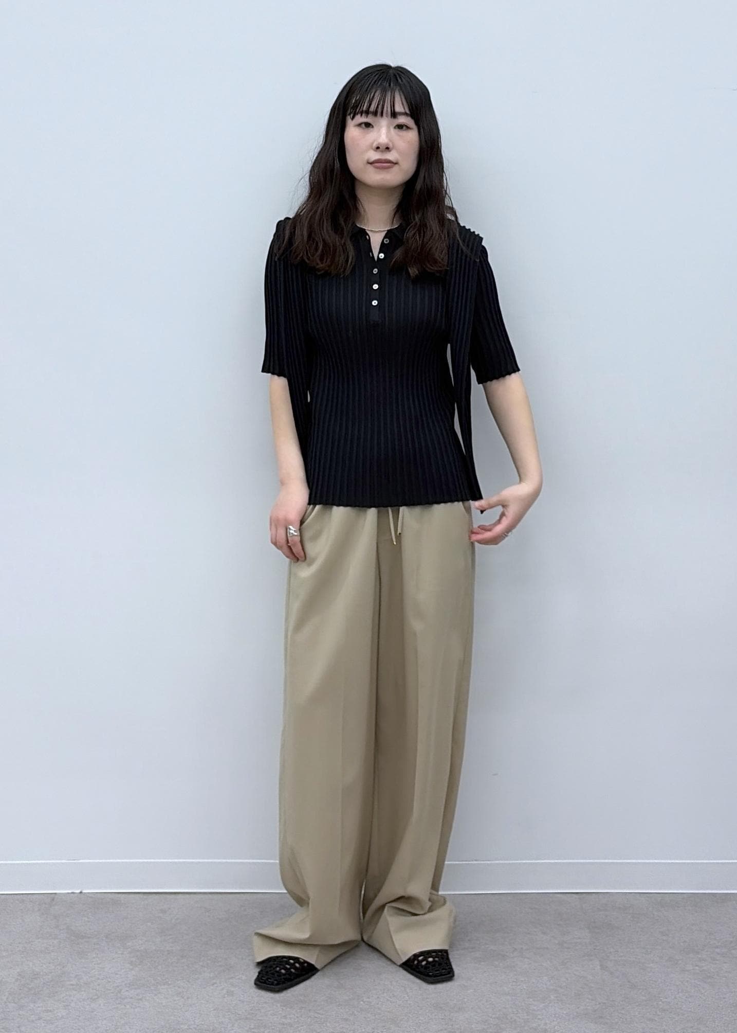 予約SALON adam et ropéワイドリブスキッパーポロシャツブラック / F¥18,700レビュー【サイズ感】
