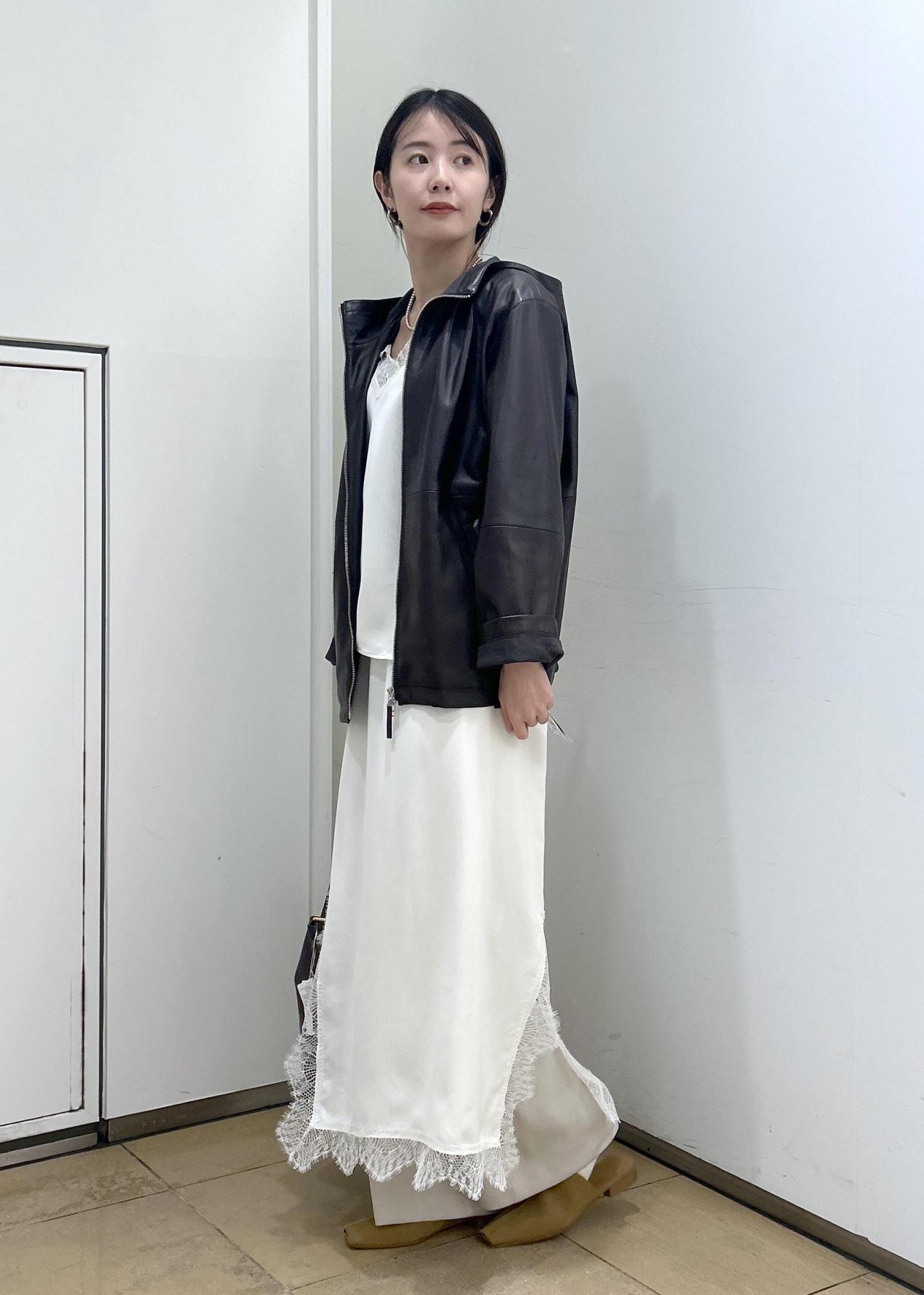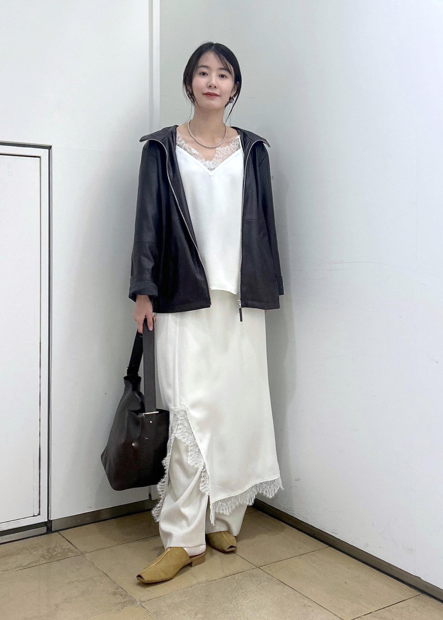 レイヤードでも1枚着でも華やかになるセットアップです。