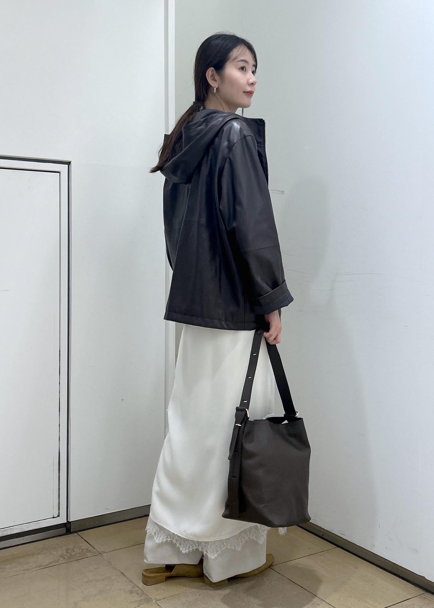 SALON adam et ropéレザーライクフーデッドパーカーダークブラウン / F¥35,200レビュー【サイズ感】