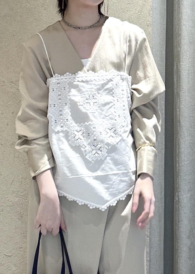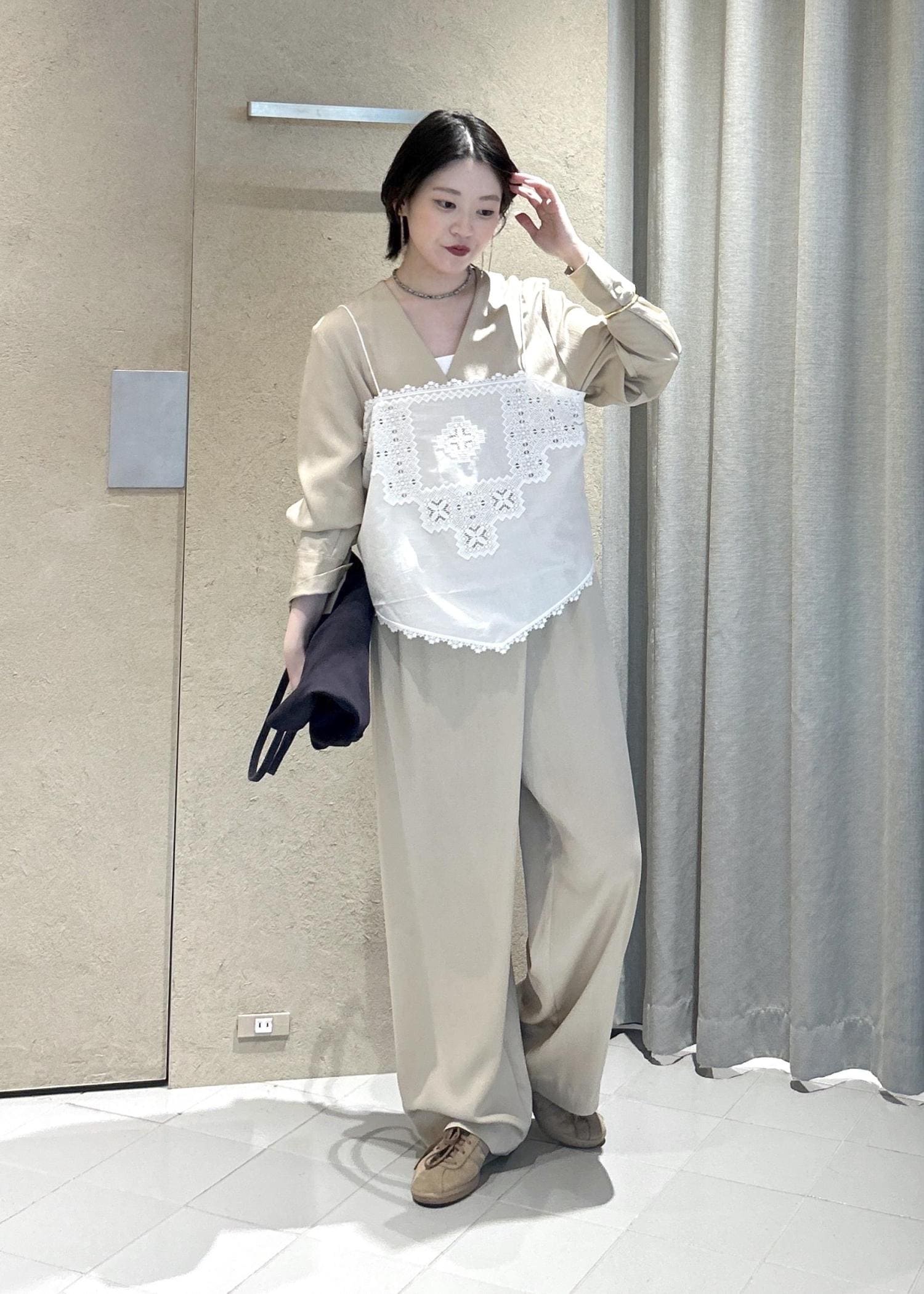 SALON adam et ropéクロスレースマルチキャミソールオフホワイト / F¥19,800レビュー着丈は肩紐の結び目で調整可能。