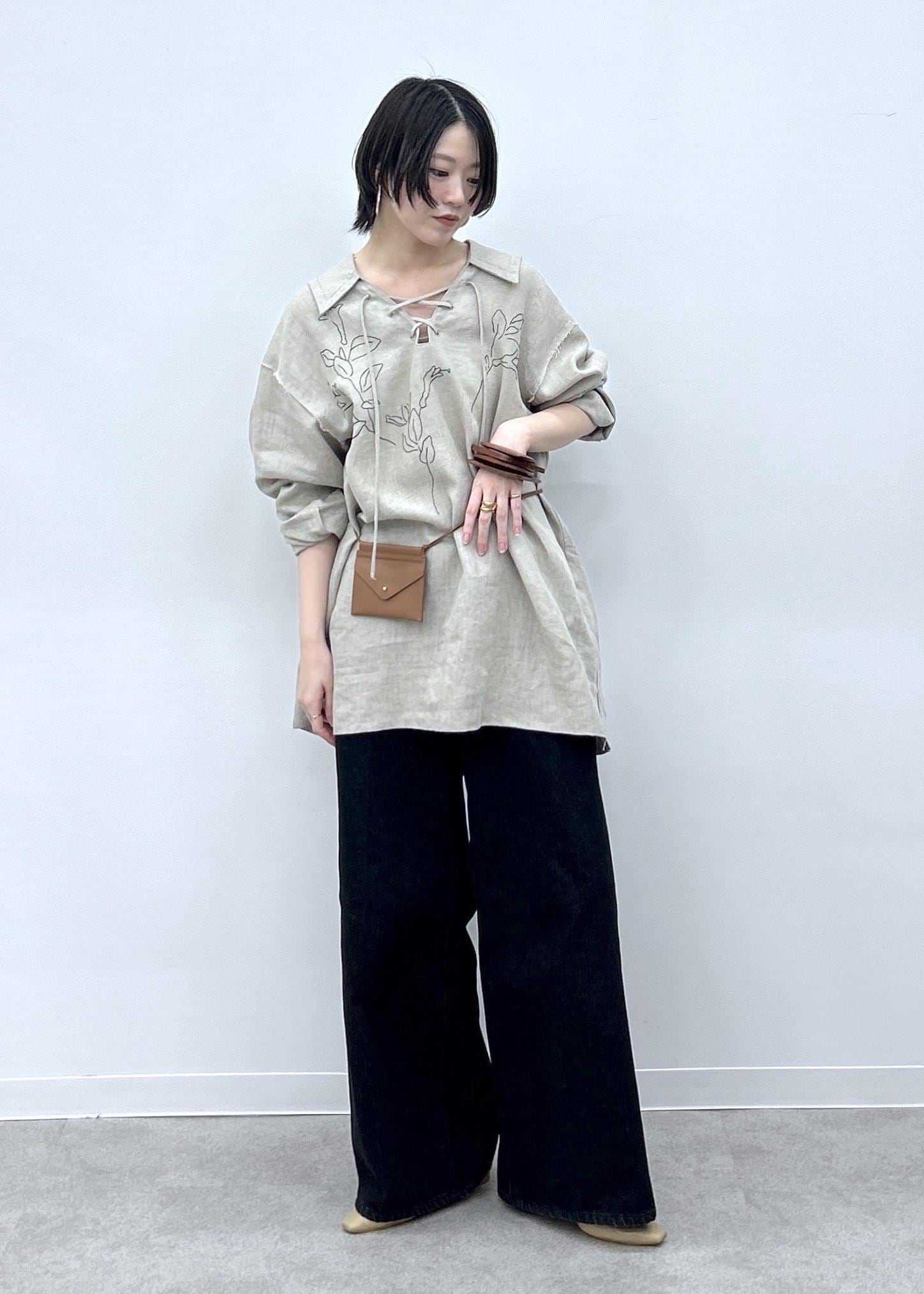 柔らかなリネン素材のナチュラルな風合いが、スタイリングに奥行きをプラスしてくれます。