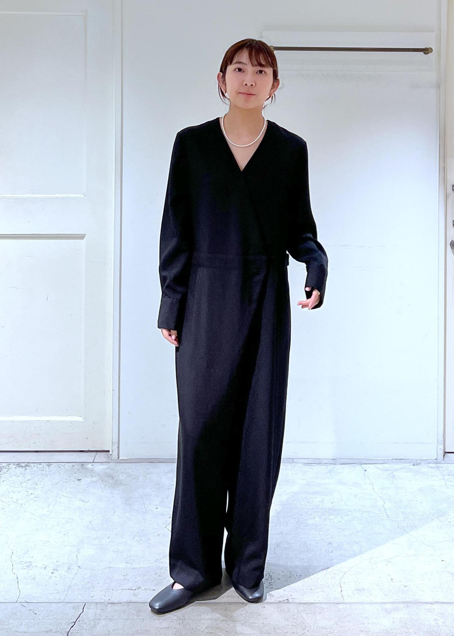 SALON adam et ropéフロントクロスオールインワンブラック / F¥36,300レビュー丈はやや長めで、踵あたりまで。