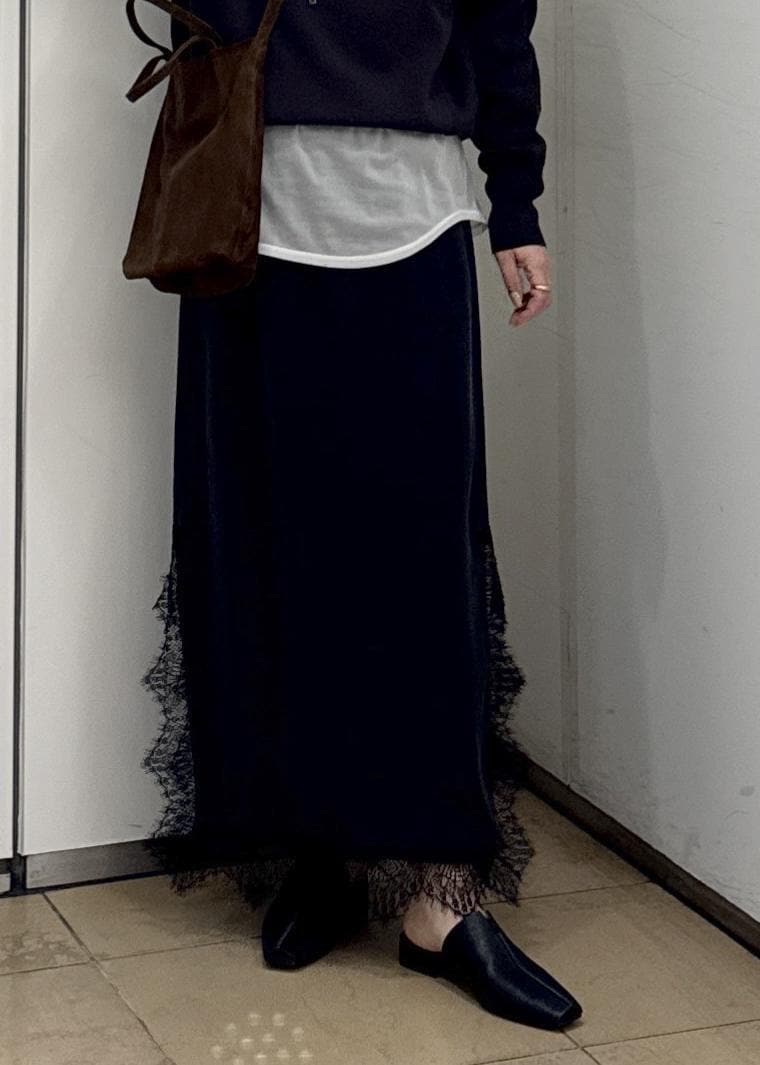 SALON adam et ropéフレンチレースパネルスカートブラック / F¥25,300レビュー上品な光沢感と落ち感のあるスカート。