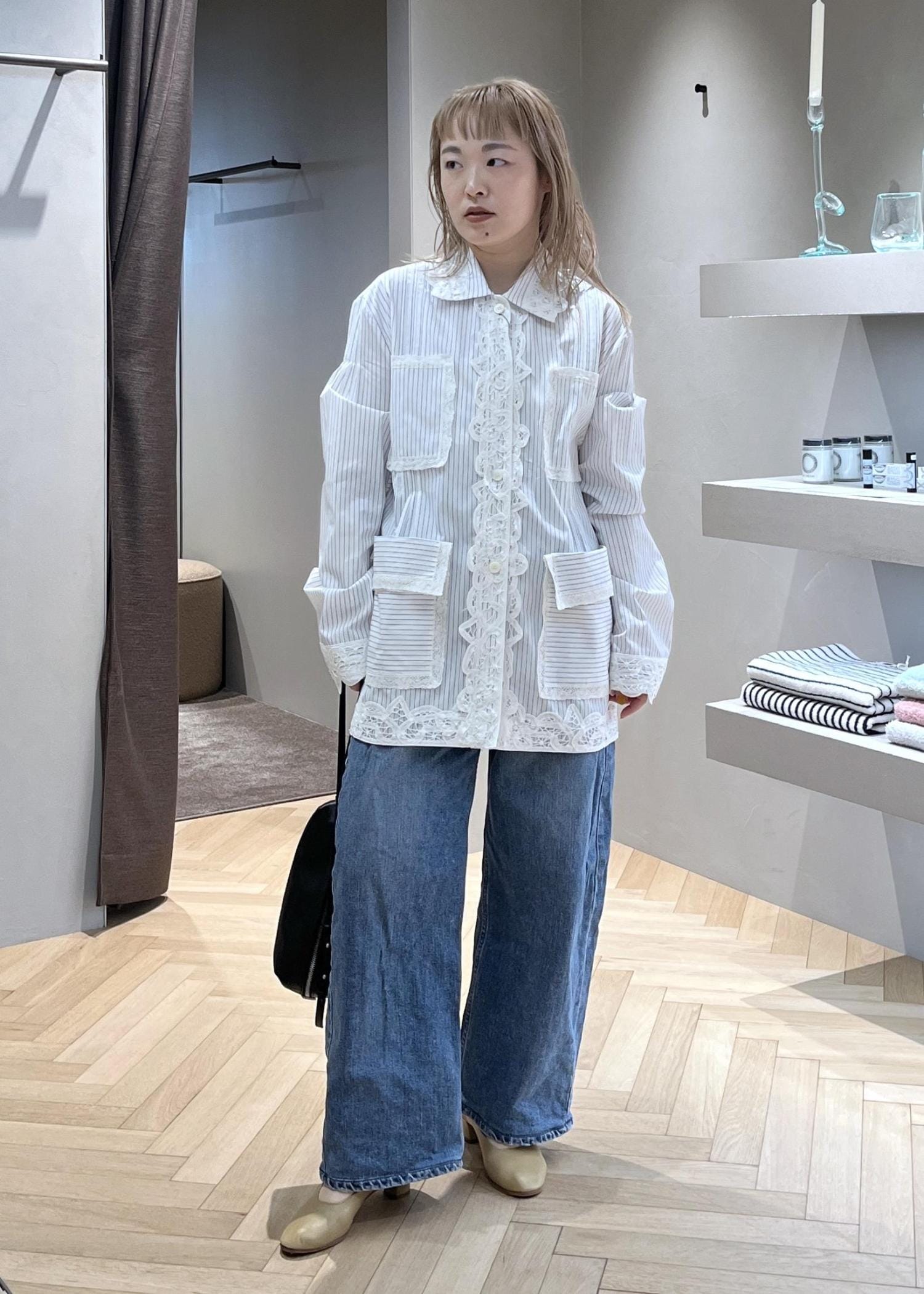 SALON adam et ropé【J'aDoRe・一部店舗限定】【MAISON EENK(メゾン インク)】Lace Trim Shirts with Pocketホワイト系 / S¥94,149レビューかなりゆとりのある着用感。特に袖が長めで小柄な私だと指先まで隠れてしまう程ですが、そのルーズさが可愛いです。