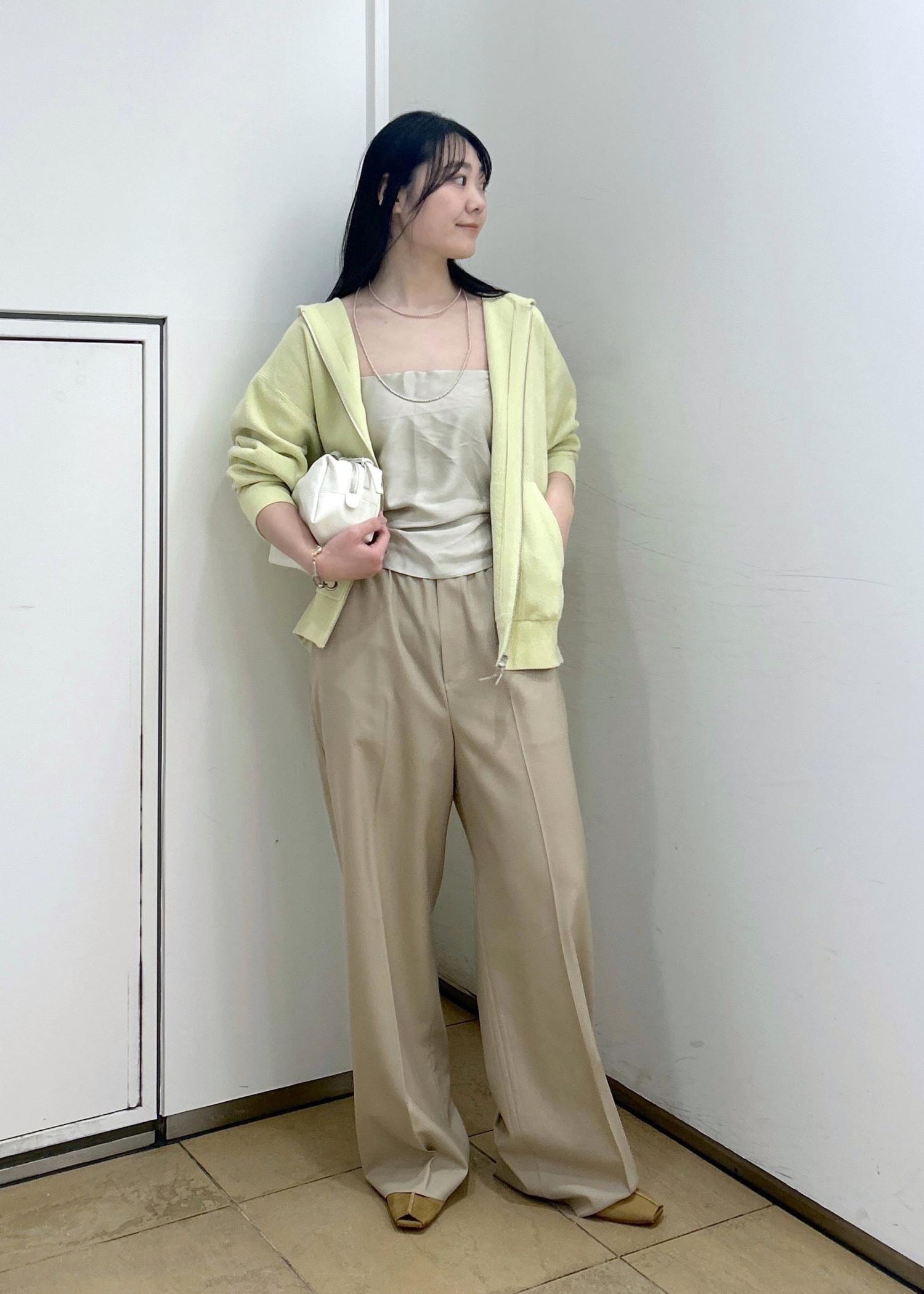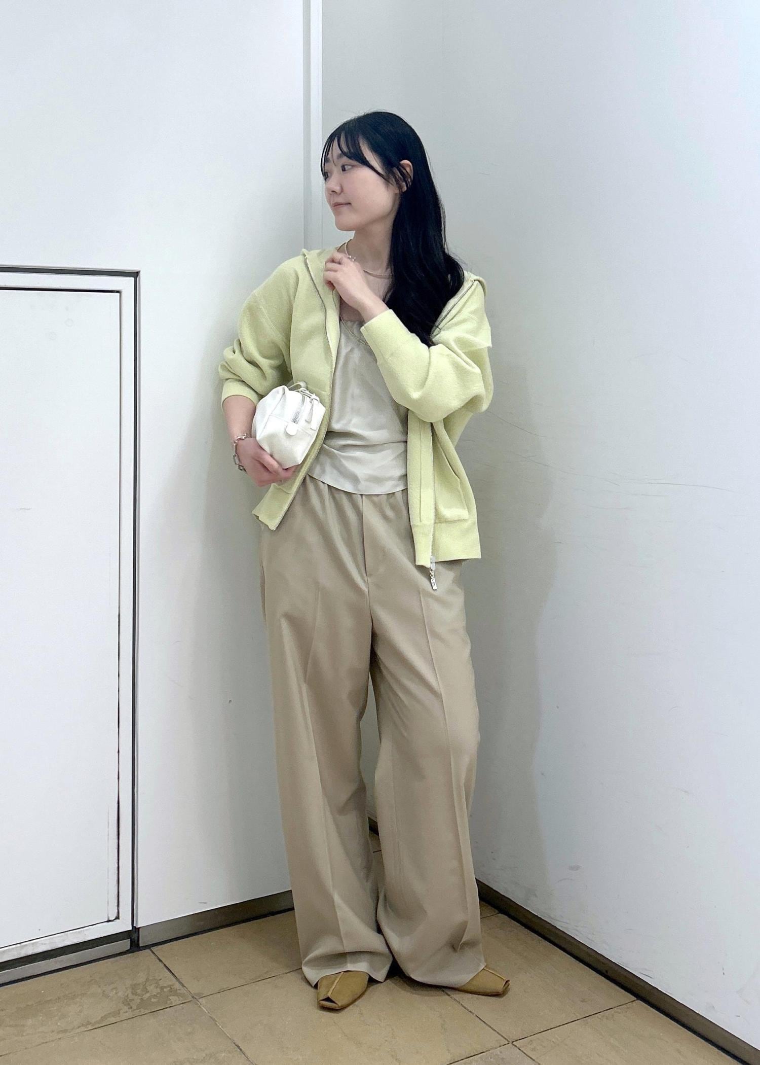 ウール素材なのですが、さらっと薄手で通気性の良い着心地。ワイドシルエットながら落ち感ある素材感とセンタープレスで美脚効果があります。 -