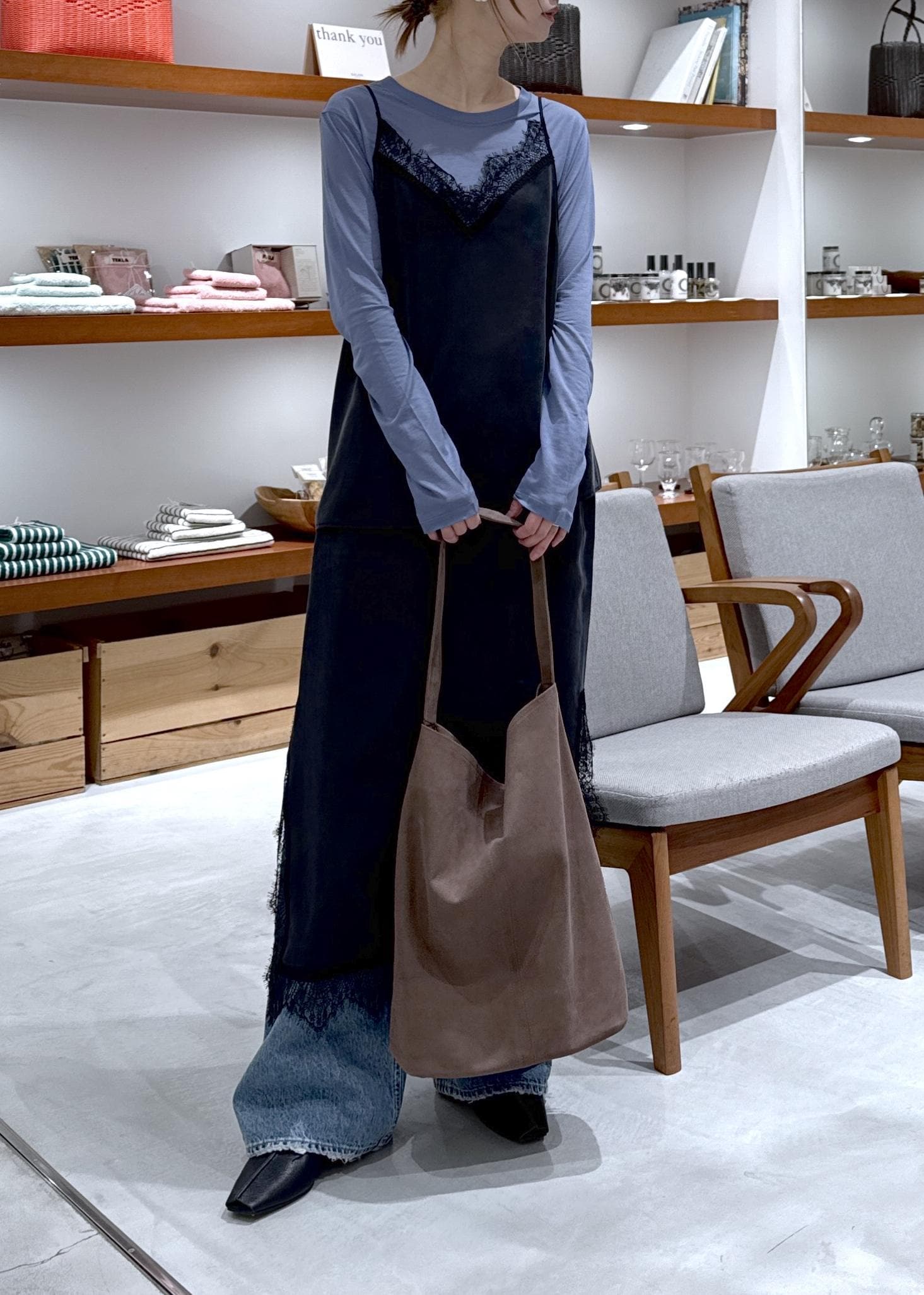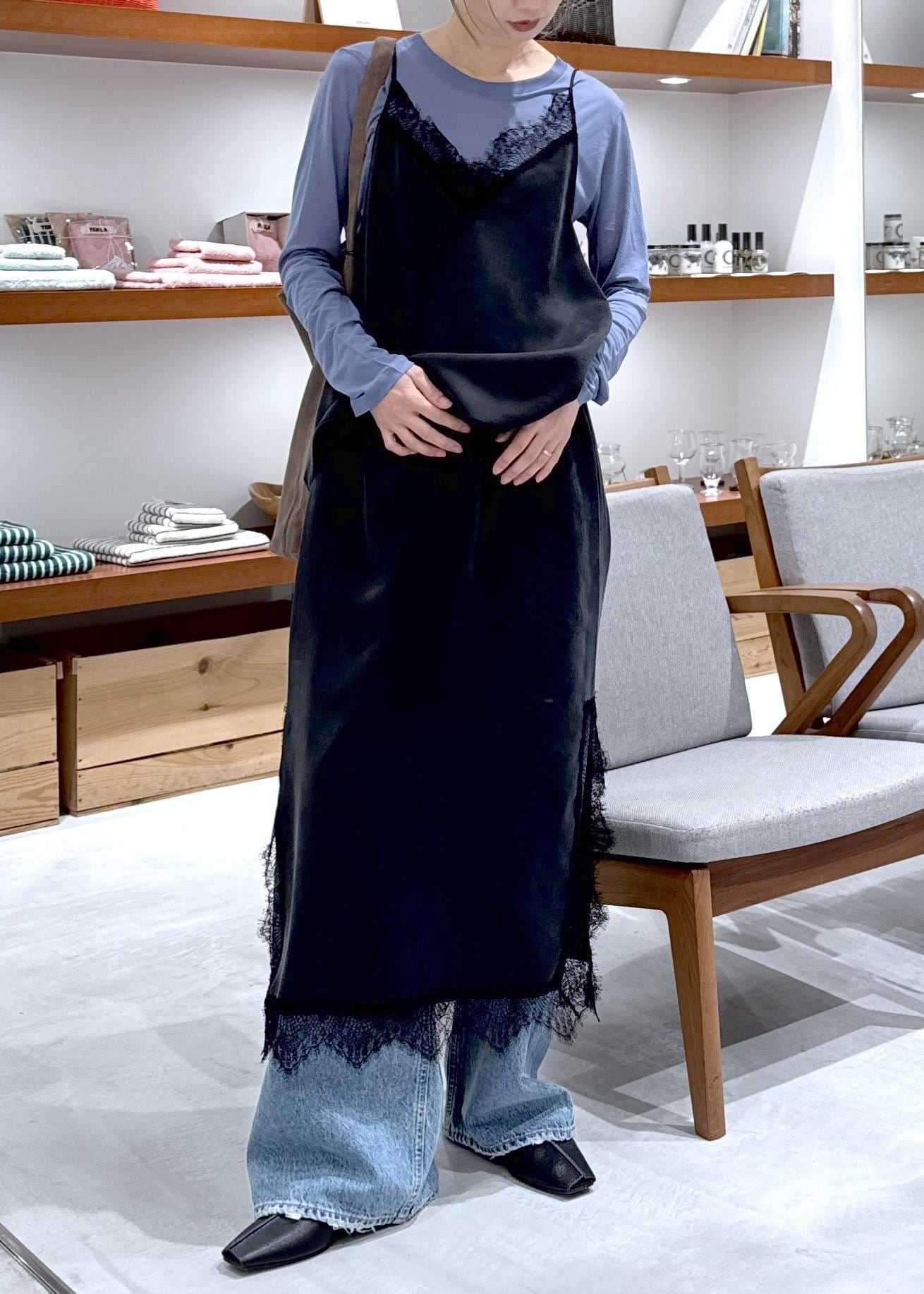 SALON adam et ropéフレンチレースフィブリルサテンキャミソールブラック / F¥17,600レビューカップ付きキャミソールなど一枚インナーを挟んでの着用がおすすめ。