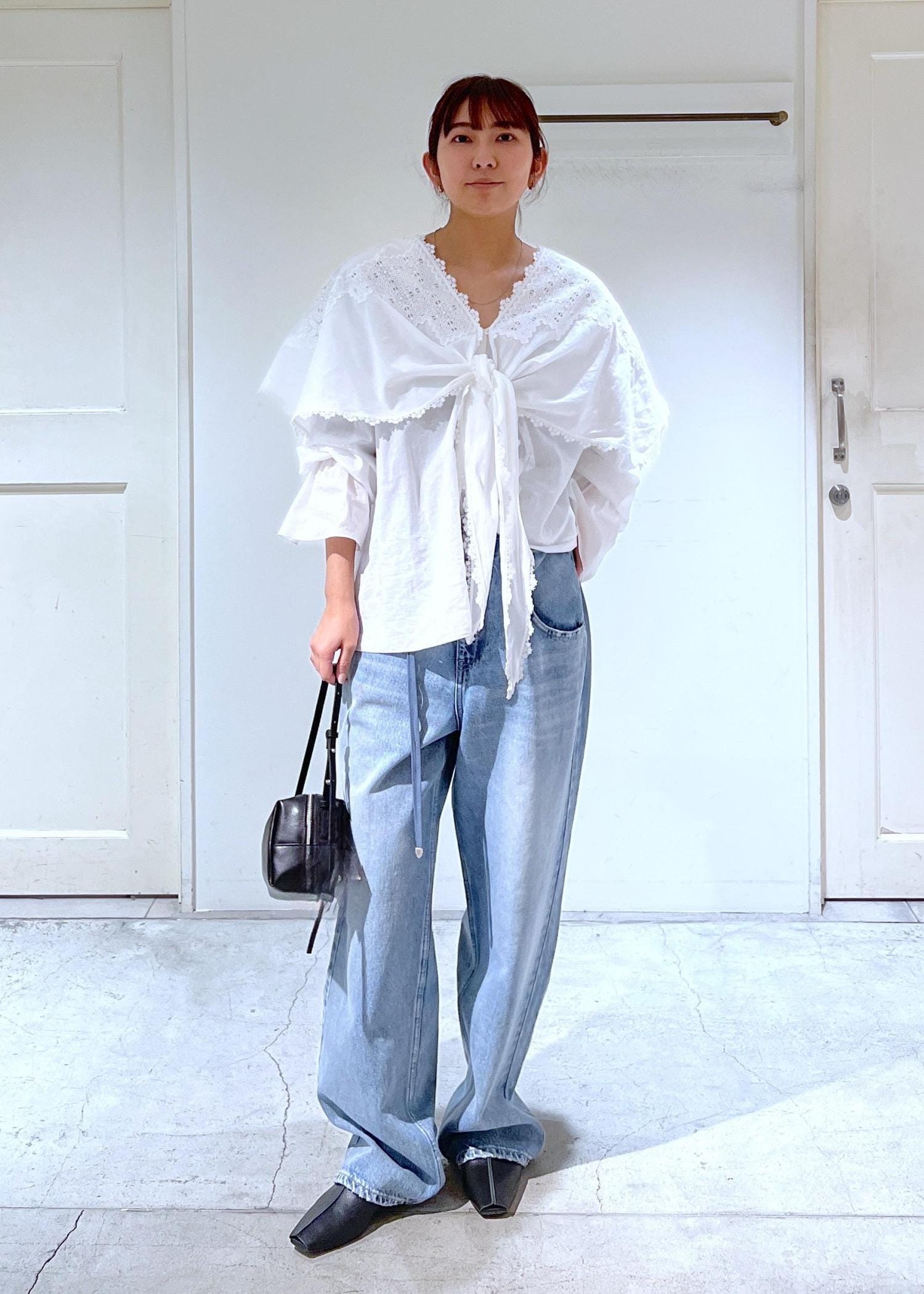 身幅や袖はボリュームがあり一枚で存在感のあるブラウスです。 -