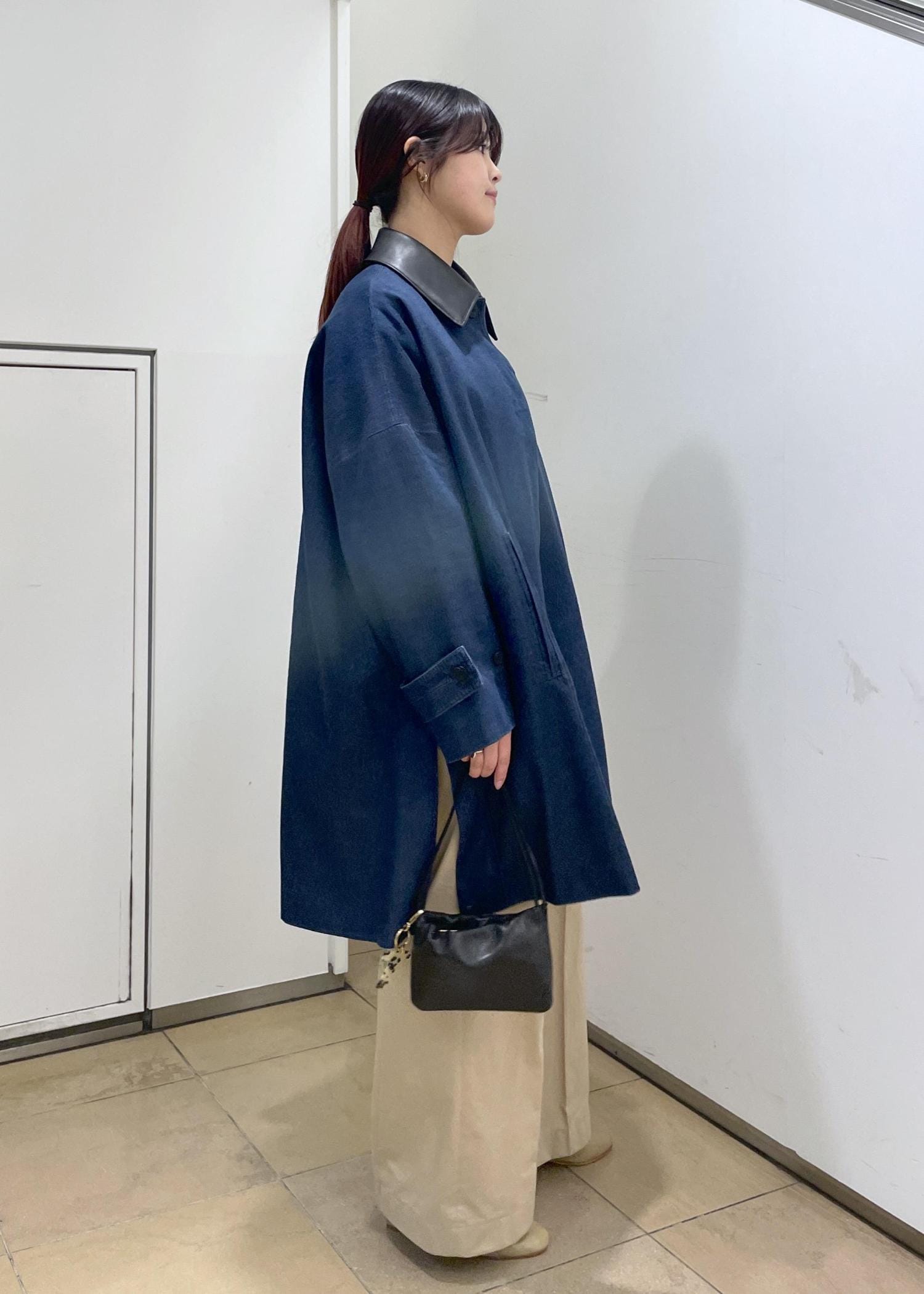 SALON adam et ropéデニムテントシルエットステンカラーコートネイビー系 / F¥49,500レビュー【サイズ感】