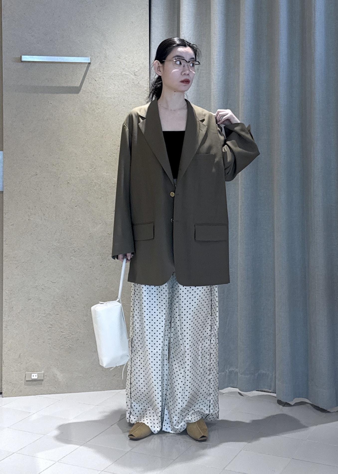 素材はウールですが、さらりと吸湿性にすぐれ初夏まで使える素材感です。