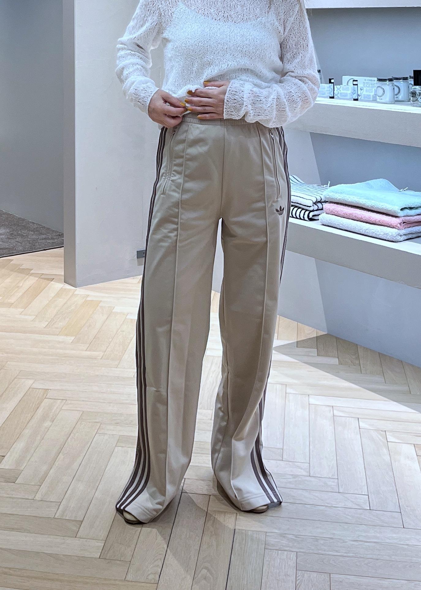 SALON adam et ropé【adidas(アディダス)】FIREBIRD LOOSE TRACK PANTSベージュ系 / M¥12,100レビュー丈は長め。152cmだとヒールでも床に着くくらいです。スッキリ細身なシルエットですが、伸縮性があるのでキツさはなし。