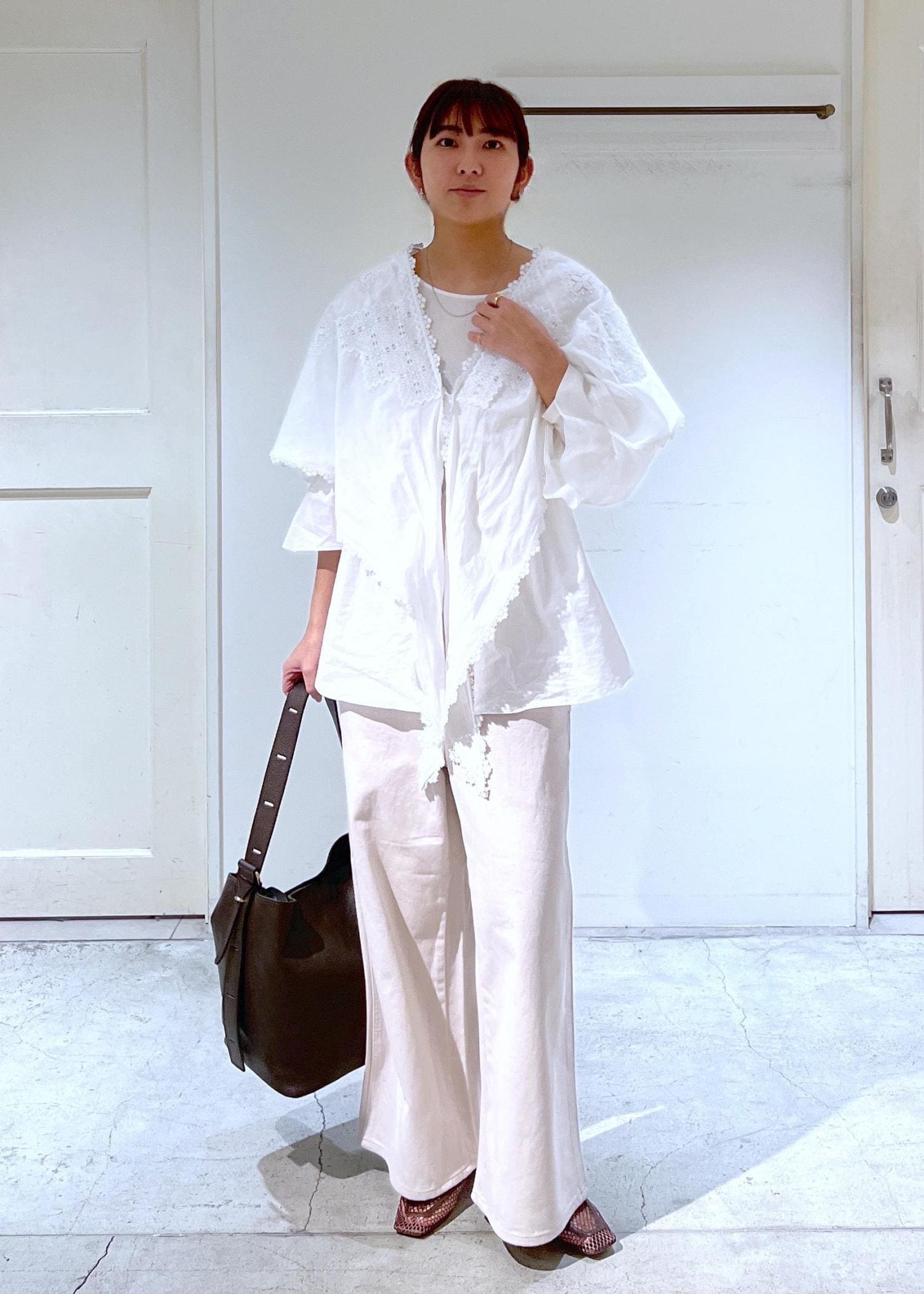 身幅はかなりゆとりがあり、インナーはさまざまなサイズ感のトップスを重ねられます。