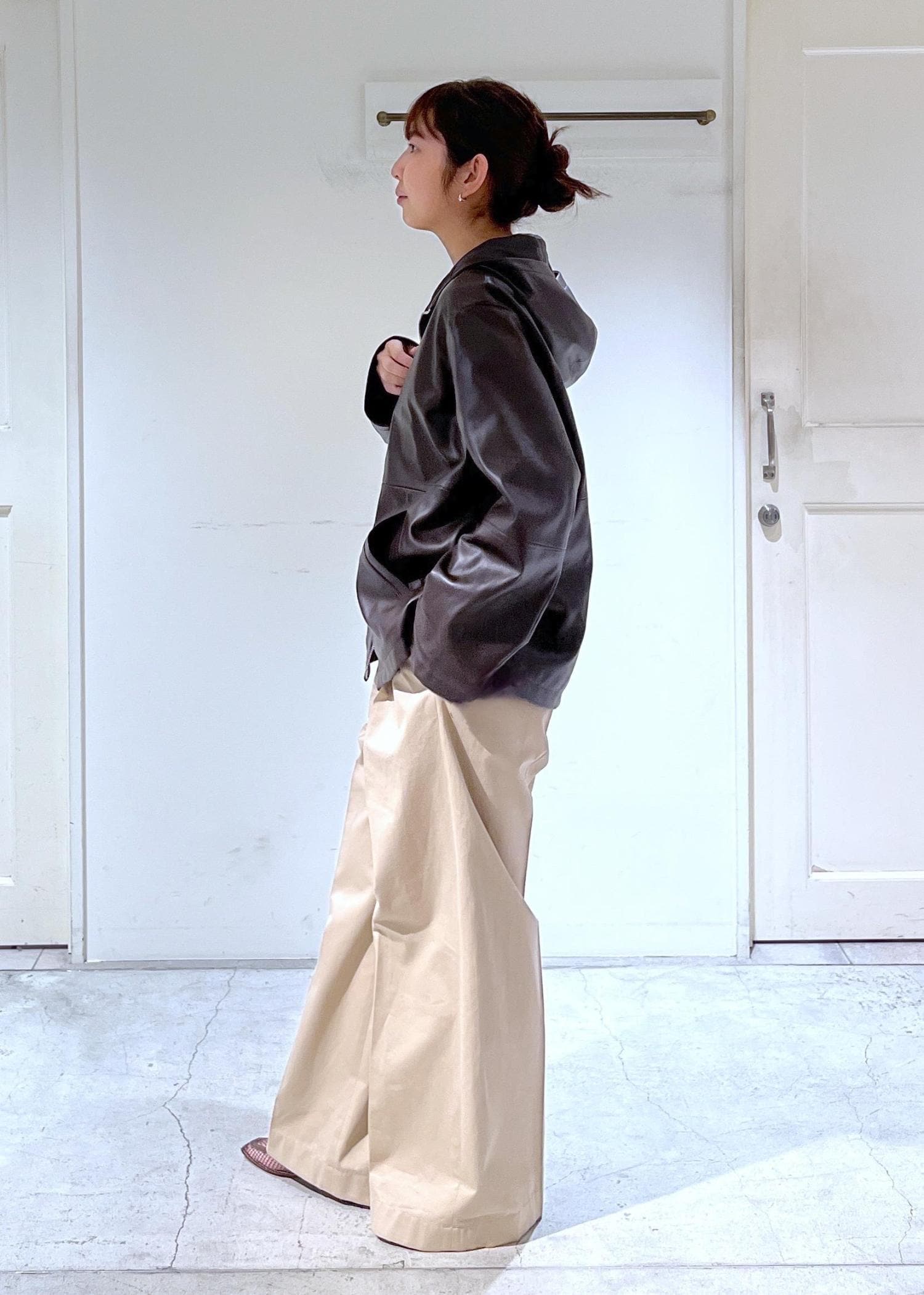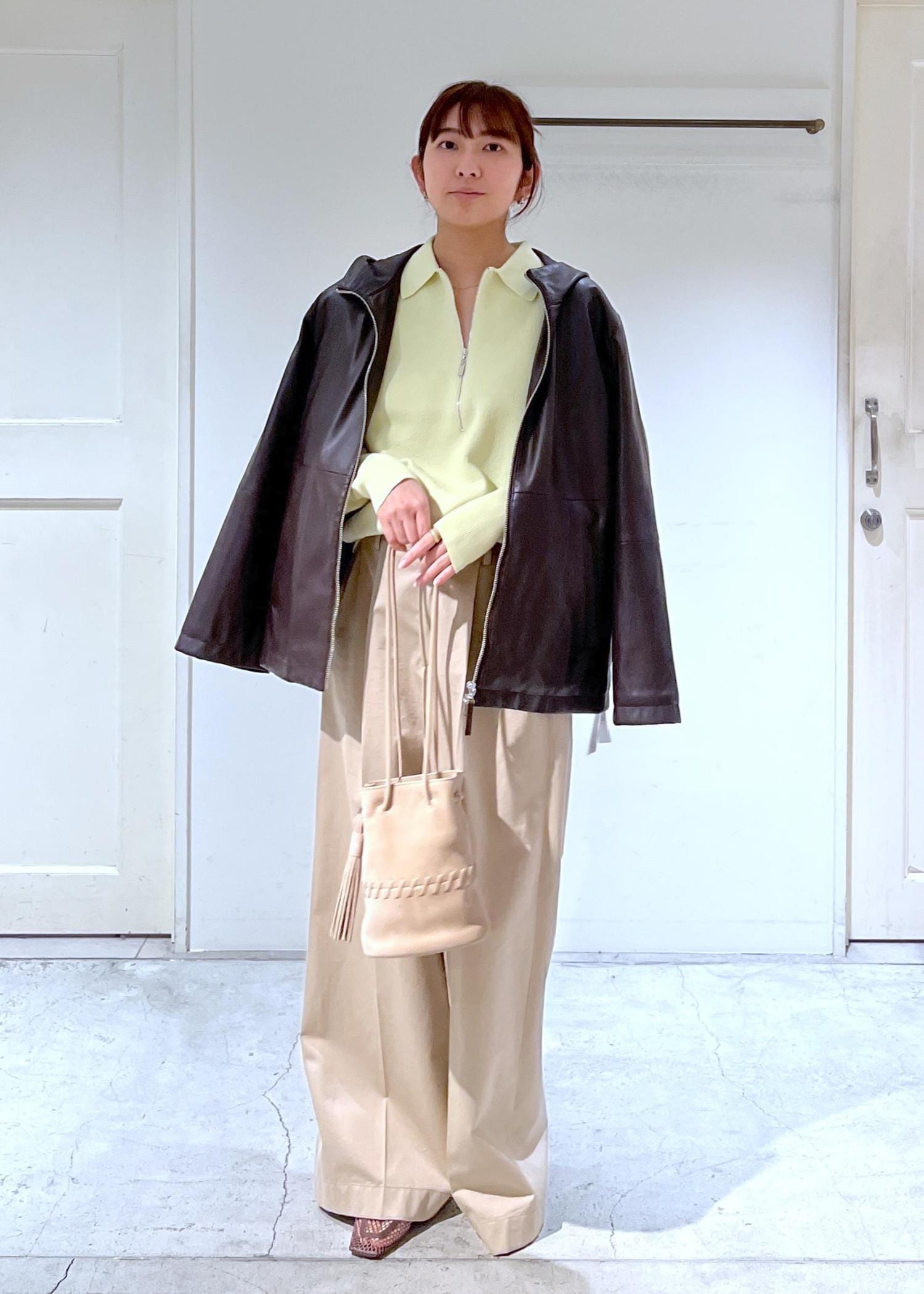 合皮ならではの柔らかさと、モード×カジュアルさのバランスが大人なアウターです。