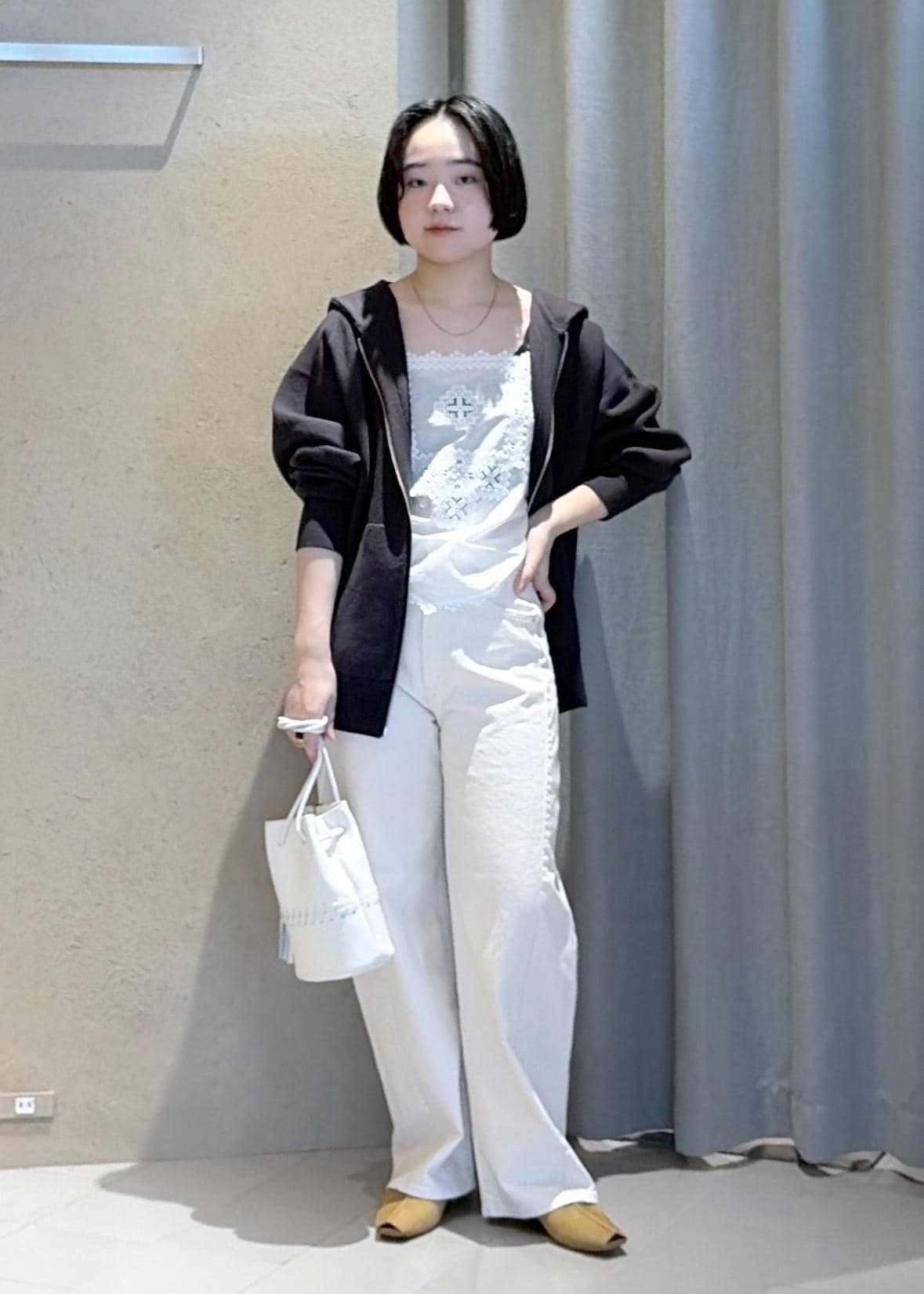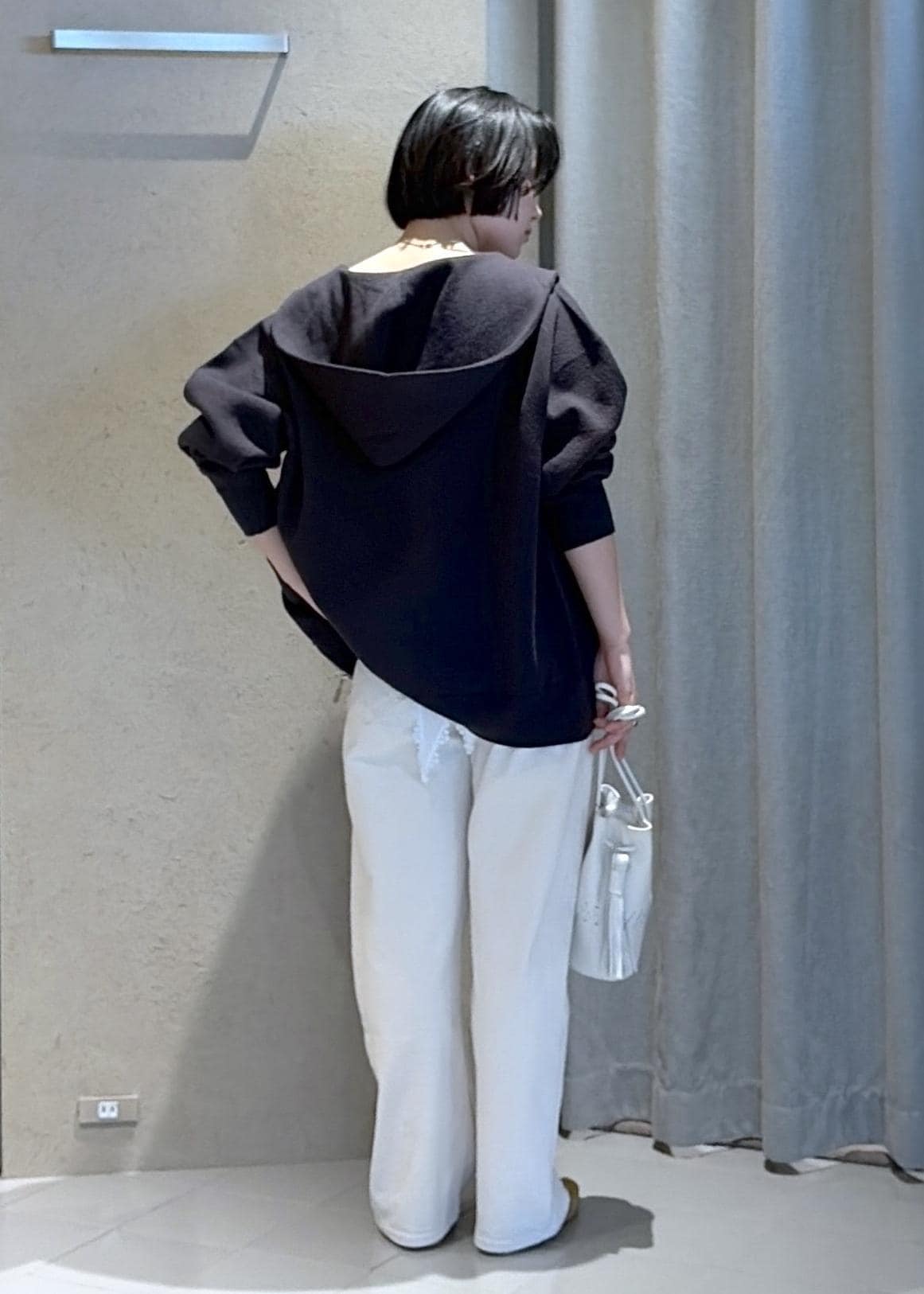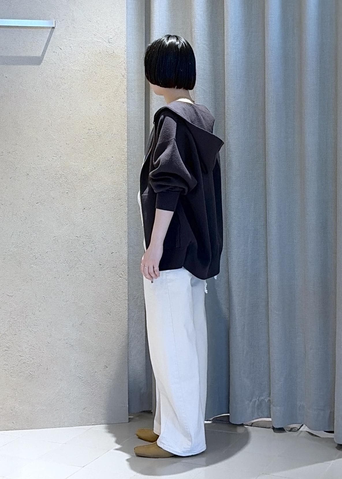 ボトムは入荷したばかりのMotherのストレッチデニムパンツを。低身長だとなかなか合うサイズが見つからないのですが、こちらはウエスト、丈ともに綺麗に履けました!ヒップ周りも綺麗に見えるこちらのデニムは伸縮性が抜群でとても履きやすいです。