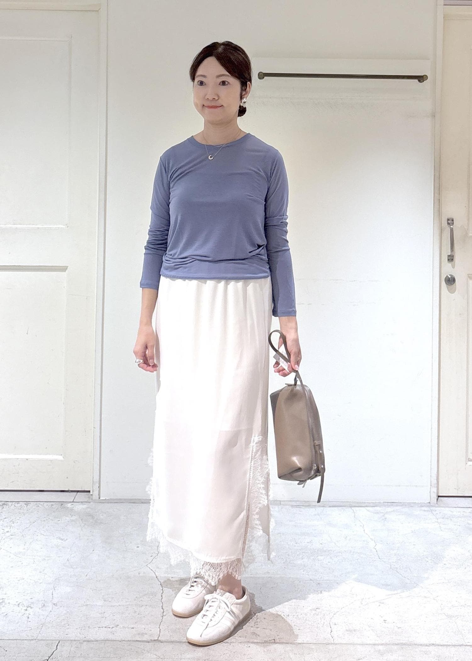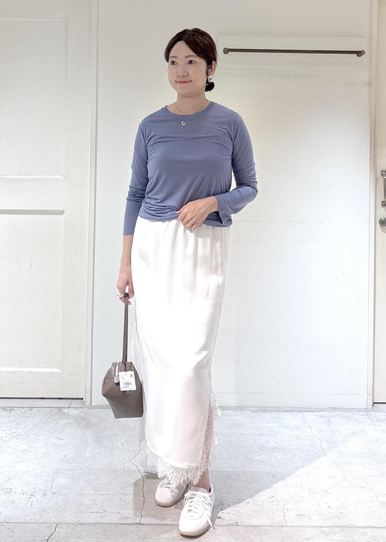 SALON adam et ropéフレンチレースパネルスカートオフホワイト / F¥25,300レビューウエストはゴムで紐調節可能なので、とてもラクですよ。サラサラとした肌触りで夏にはビーサンも◎。