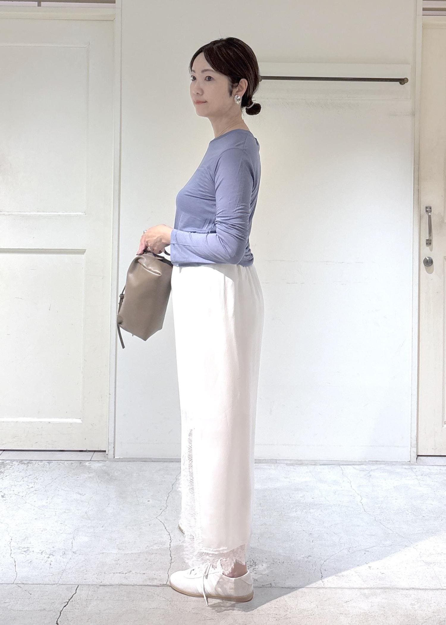 サイドに入ったレースが印象的でオンオフ問わずご着用頂けます。
