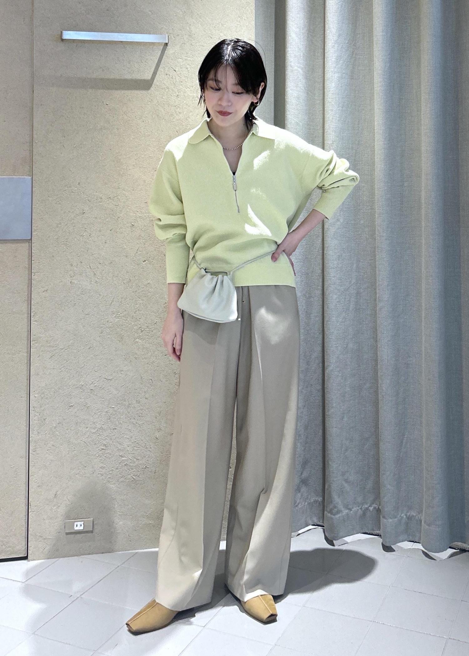 スッキリとした細身のシルエットなので、リラックスしつつもモードな雰囲気にまとめてくれます。 -