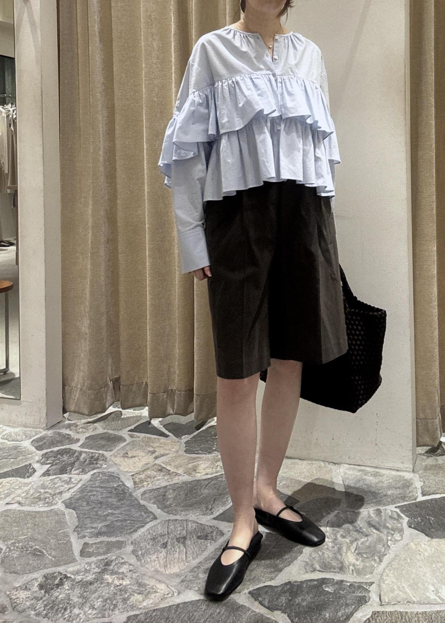 私は身長が163cmですが着丈は長めのデザインで、縦のラインを美しく演出してくれて、大人の装いにぴったり!洗練されたシルエットです。