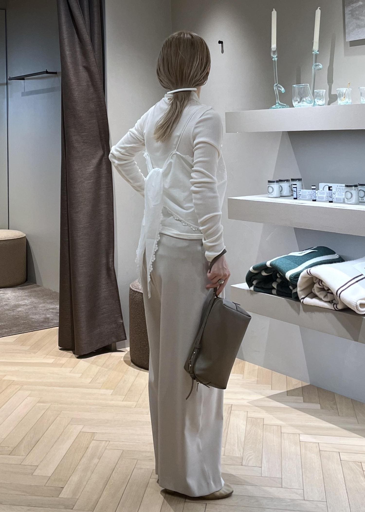 SALON adam et ropéHug Silkハイネックプルオーバーホワイト / F¥15,400レビューハイネックというほど高さはなく首回りに添う程度。