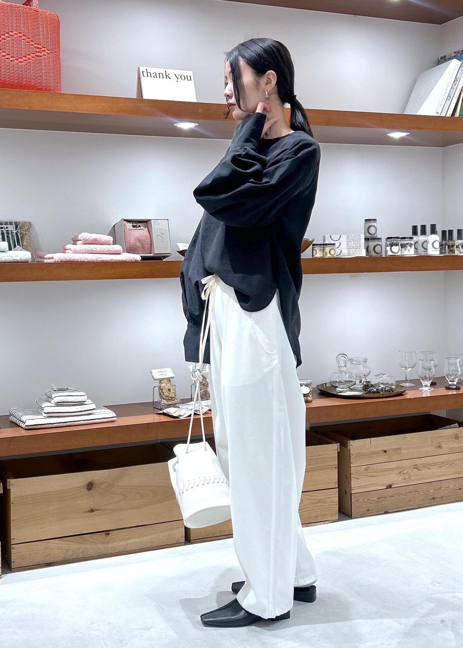 着丈はしっかりくるぶしが隠れました。ややカーブがかかったパンツです。