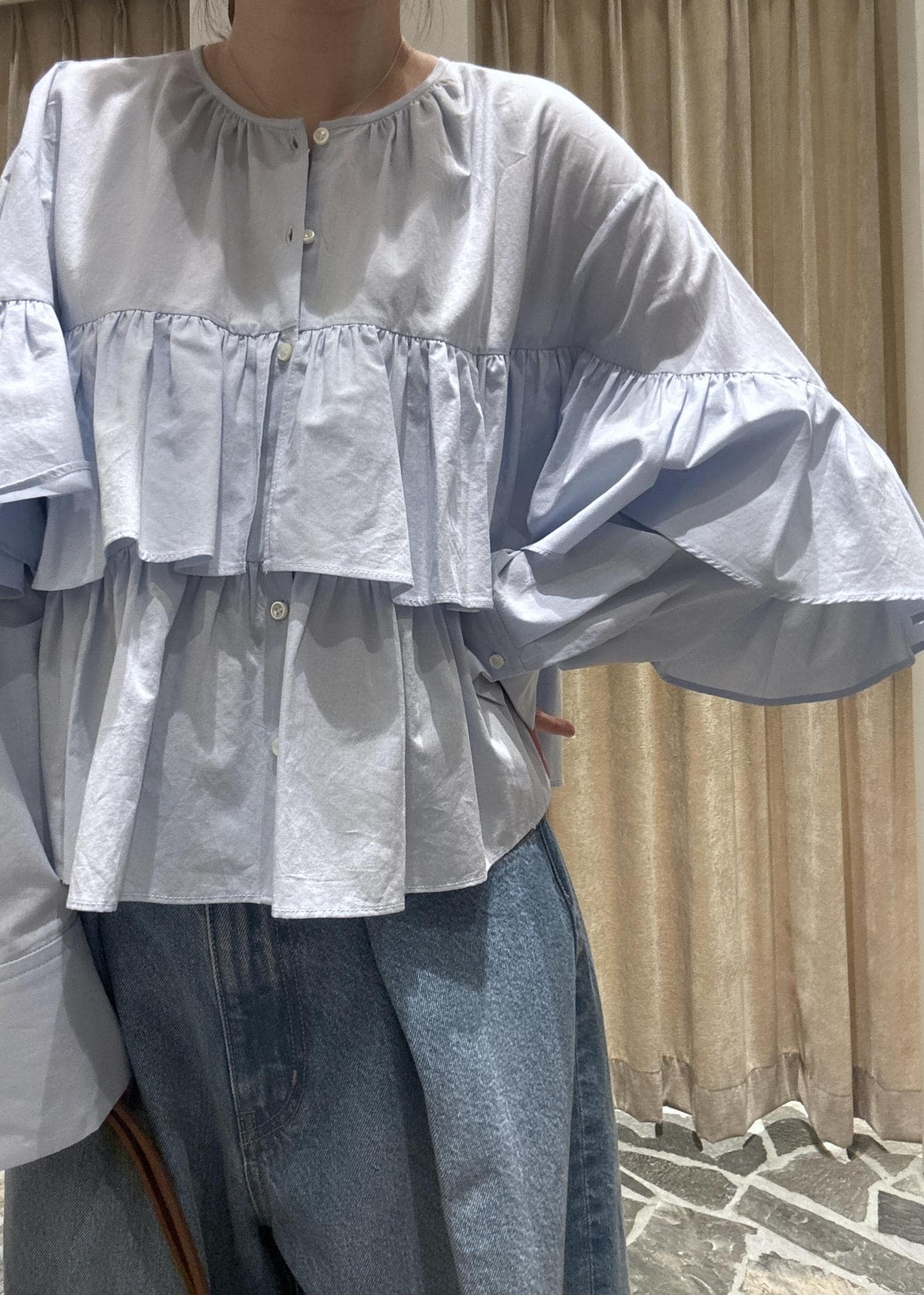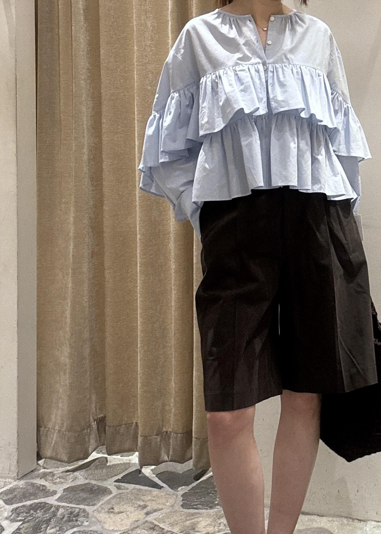 立体感のあるフリルが印象的なブラウスのご紹介。