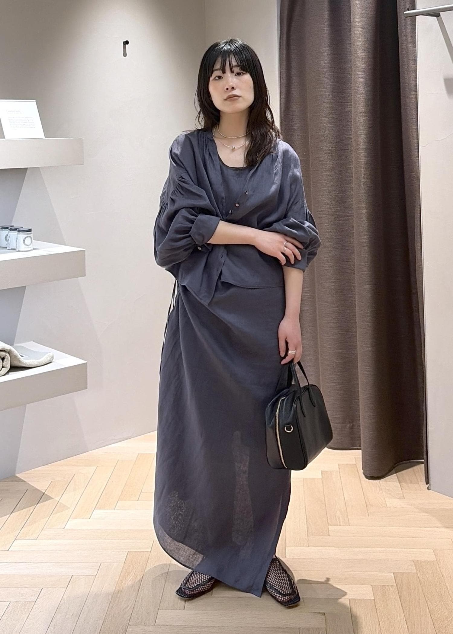 自身の身長だとふくはらはぎ下あたりの着丈です。ゆとり感持って着ていただけます。
