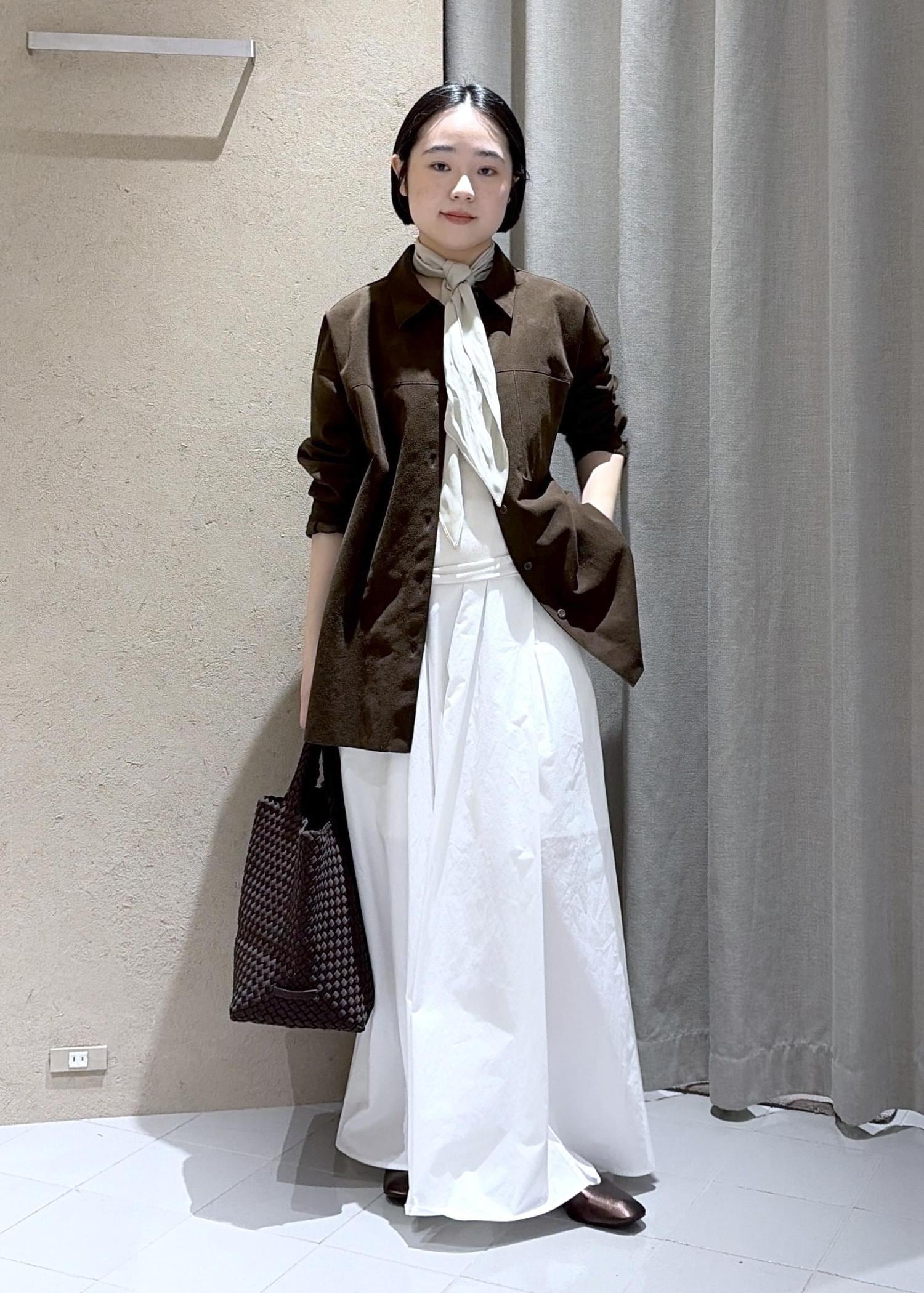 今回は時期の変わり目の今にぴったりなスエードのシャツと合わせて流行りのコーディネートを意識しました。